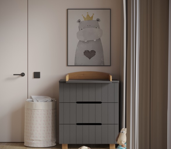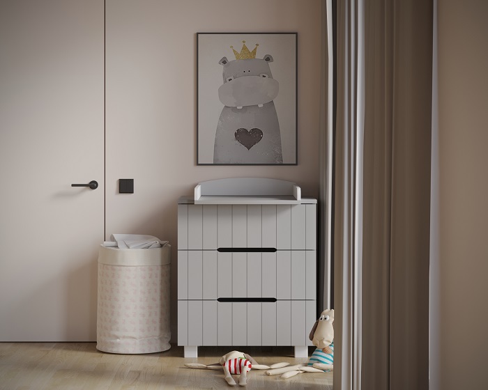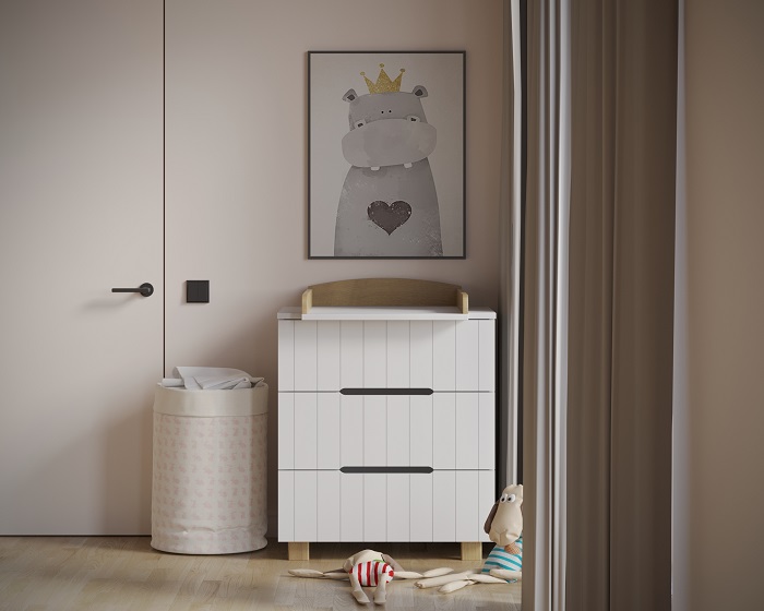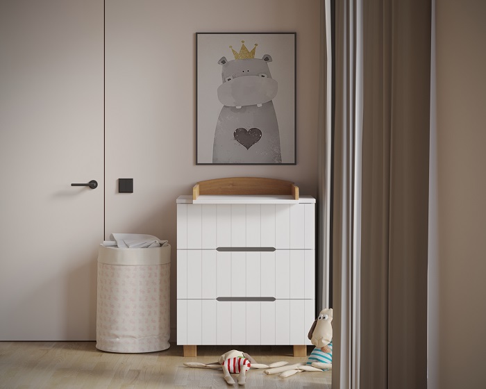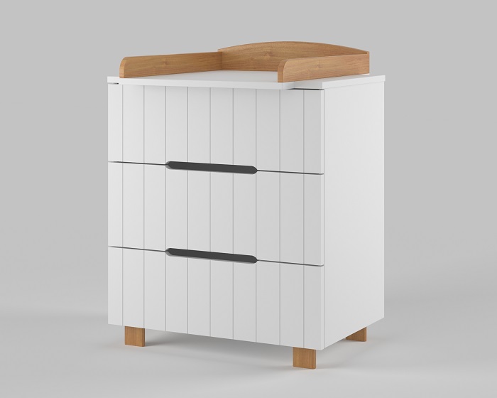 Комод выполнен из качественных и безопасных материалов для ребенка. Без острых углов. С надежными ножками, которые позволят легко проводить влажную уборку в комнате.