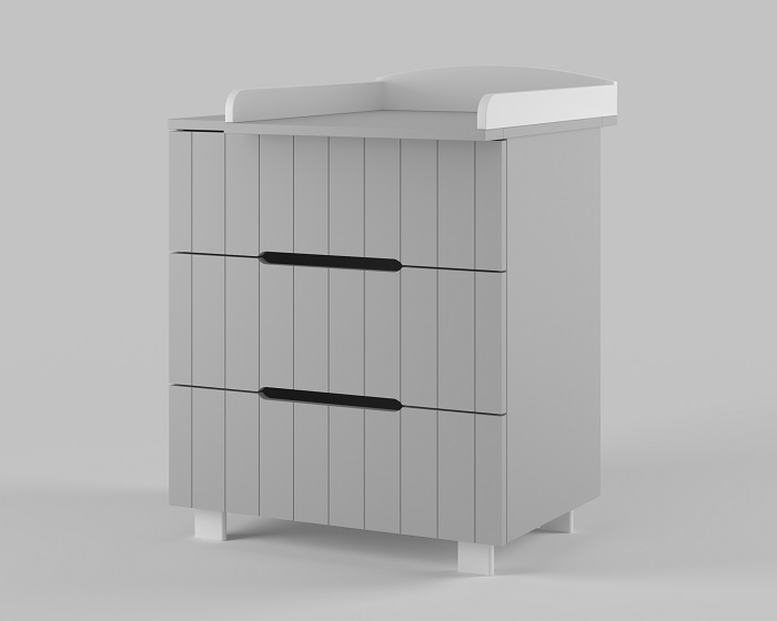 - как бельевой комод с тремя вместительными ящиками и оригинальными выемками вместо ручек. Шариковые направляющие позволяют ящикам открываться /закрываться тихо и плавно.
