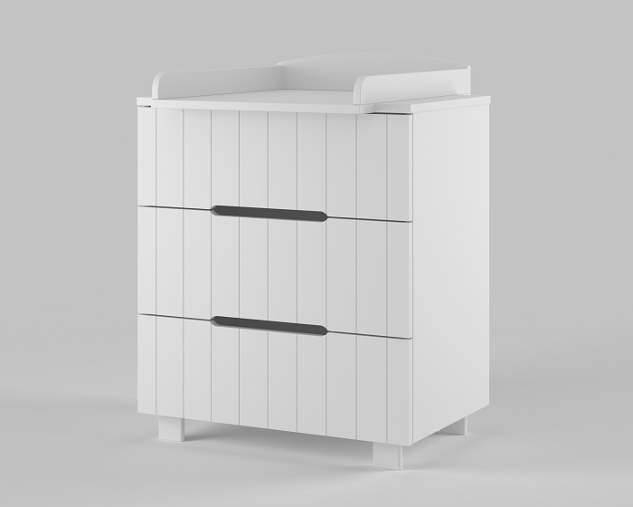 Особенность комода - современный скандинавский стиль, который позволит легко вписать комод в любой интерьер. Он одинаково прекрасно будет смотреться в детской, спальне, гостиной. К нему легко подобрать различные аксессуары. Главной часть в визуальной привлекательности комода являются эффектные вертикальные линии на фасаде. Этот дизайнерский акцент придает комоду уникальность и стильность, превращая его в произведение искусства.