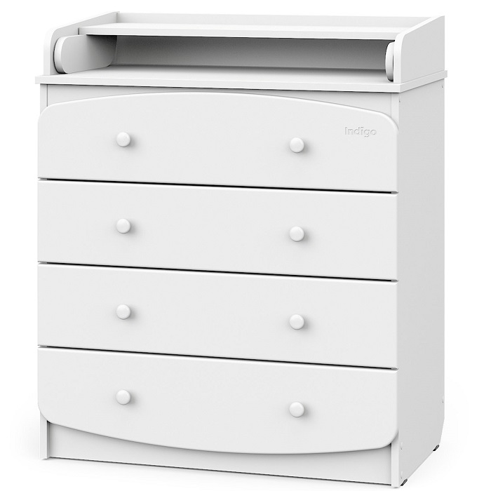 Комод Indigo Classic 800/4 (индиго классик 800/4) - функциональный и стильный комод с откидным пеленальным столиком. Такой комод не только позволит удобно разместить все детские вещи для ребенка, но и позволит оборудовать удобное и безопасное место для пеленания, переодевания ребенка. Пеленальный столик легко откидывается, образуя большое место для малыша. Если столик не нужен, его легко сложить и использовать, как дополнительные место для хранения.