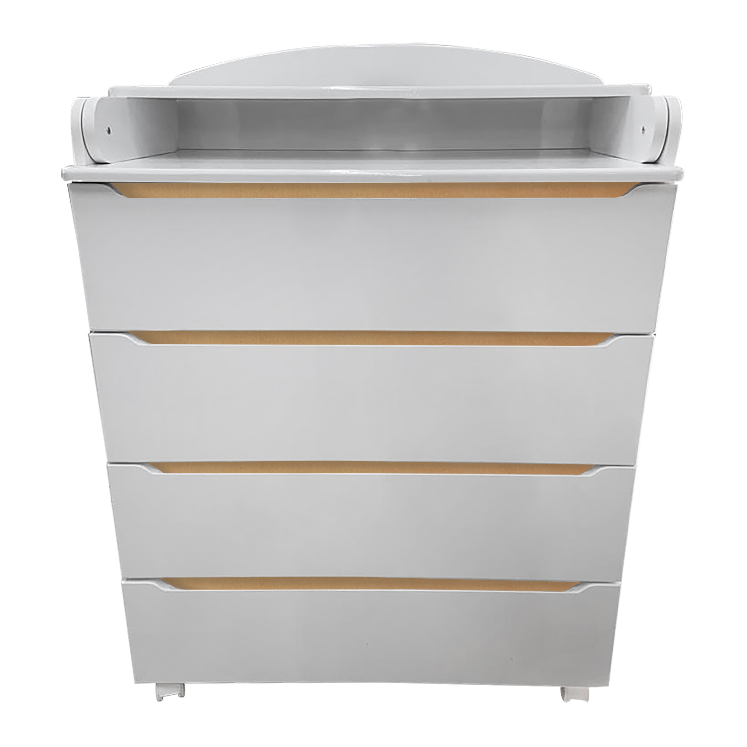 В комоде четыре вместительных ящика. Ходят ящики бесшумно, выдвигаются с помощью шариковых направляющих. Внизу комод дополнен мобильными колесиками, чтобы мама могла легко двигать мебель при необходимости или по желанию.