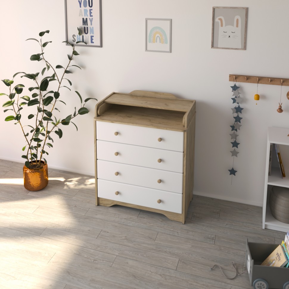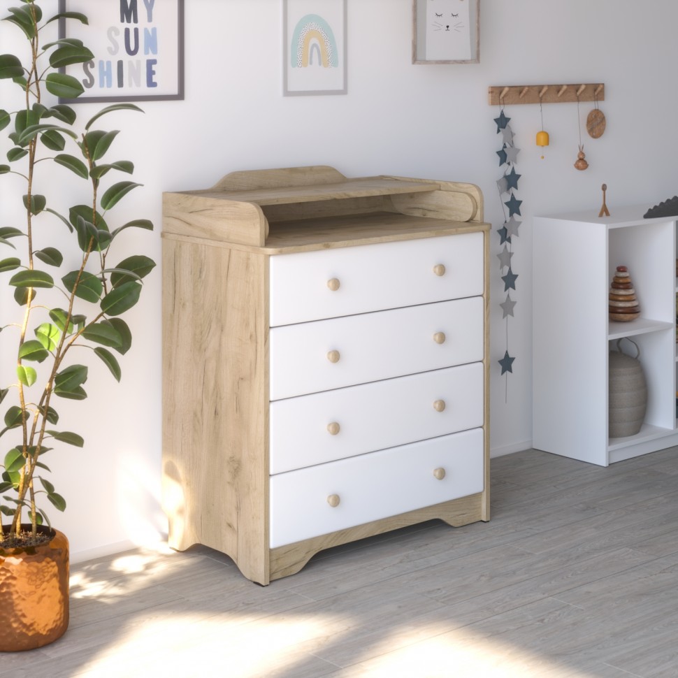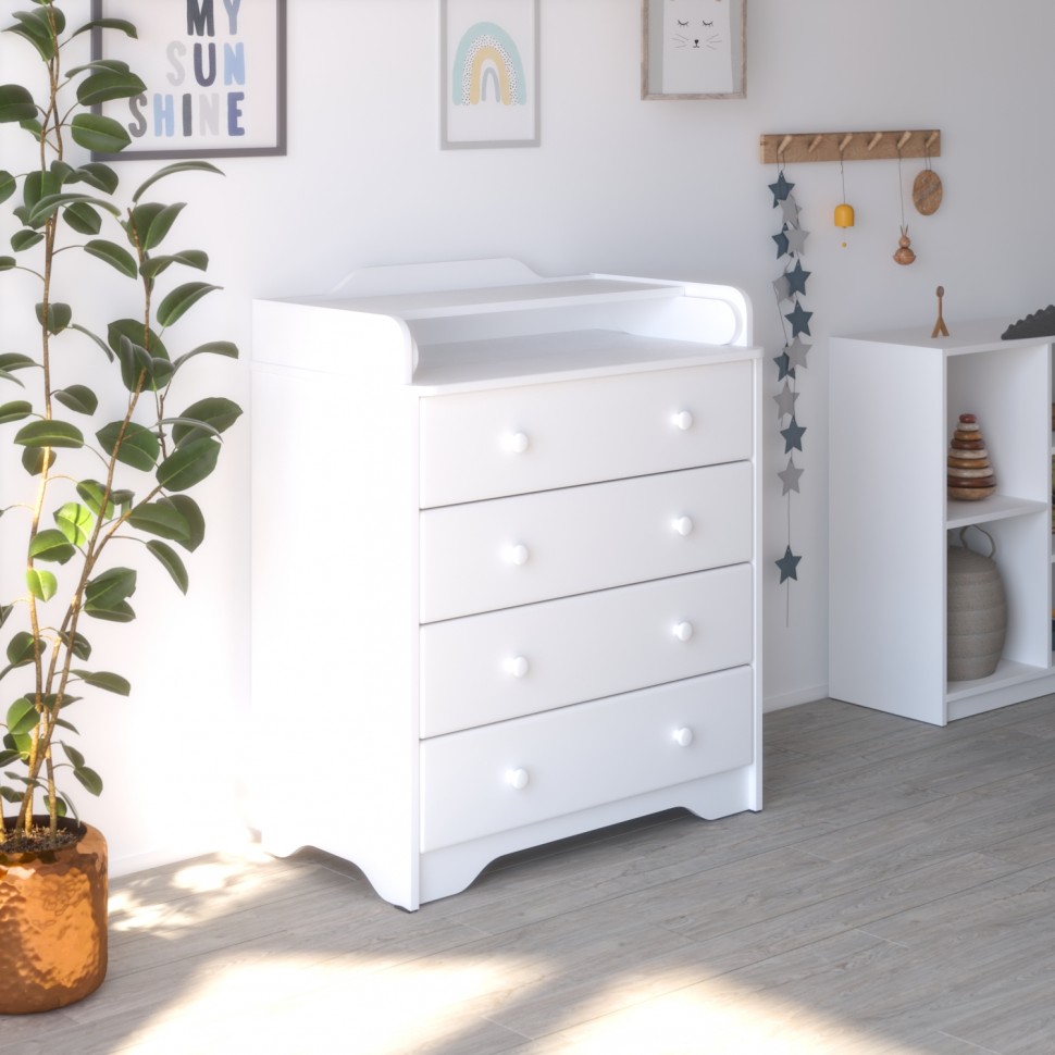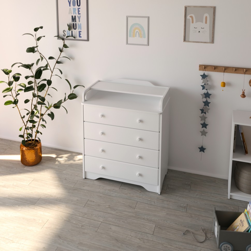 Комод Malika Lord 4 ящика (Малика лорд) - станет не только помощником в уходе за ребенком, но и главным украшением любой комнаты: детской, гостиной. Четыре вместительных ящика плавно открываются за счет шариковых направляющих. В комоде используется скрытый и надежный механизм раскладывания пеленального столика. У столешницы комода и раскладного пеленального столика скругленные углы для удобства и безопасности. Комод станет прекрасным дополнением к детской комнате для комфортного пеленания малыша и хранения детских вещей.