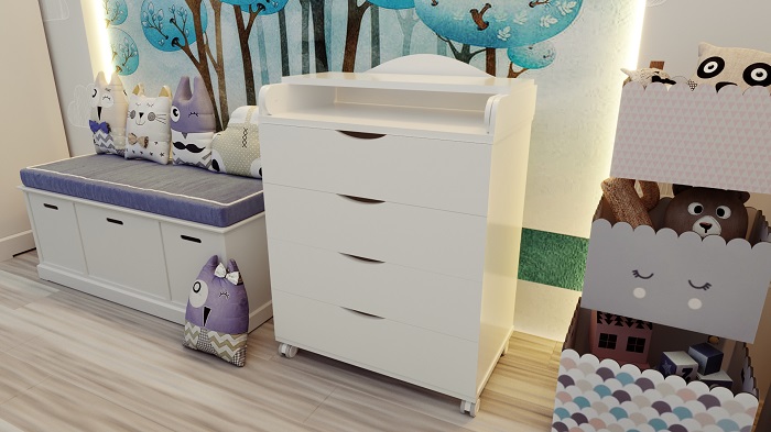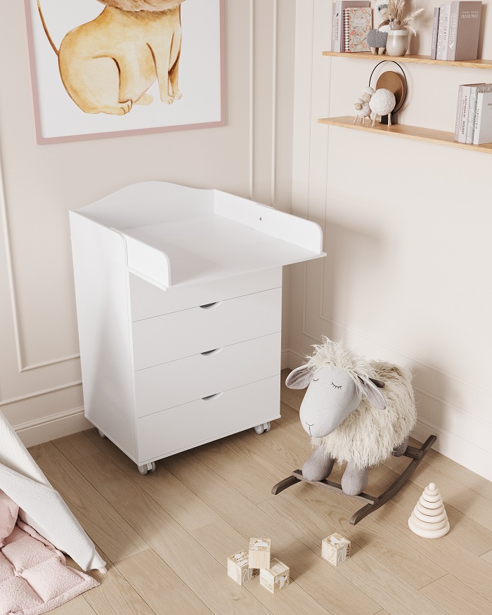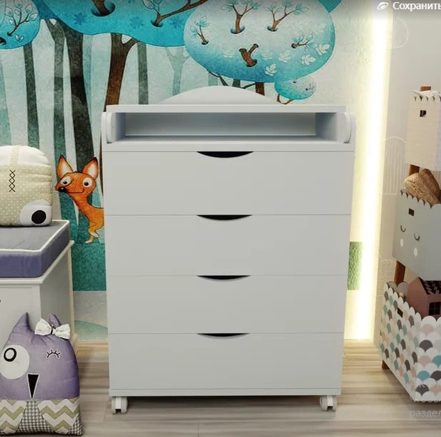 Комод Mika Eva Lux 800/4- удобный и практичный комод со складным пеленальным столиком. Станет незаменимым предметом мебели для семьи с маленьким ребенком. Пеленальный столик удобно раскладывается, помогая маме удобно переодевать, пеленать ребенка, проводить все необходимые гигиенические процедуры. В сложенном виде столик не занимает много места и может использоваться как дополнительные полочки. Классический дизайн комода позволит легко вписать его в любой дизайн детской комнаты, гостиной. Комод широкий и оснащен глубокими вместительными ящиками на шарикоподшипниковых направляющих.