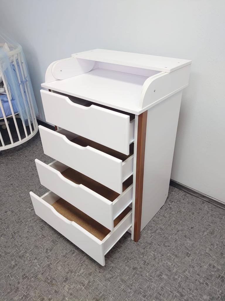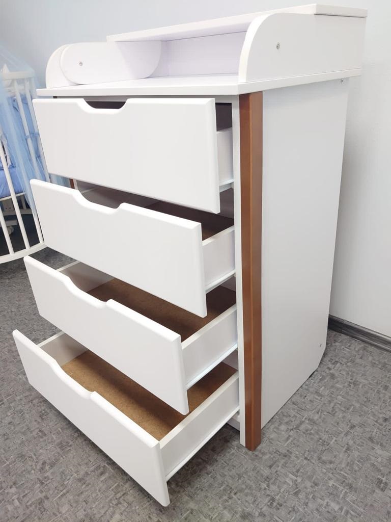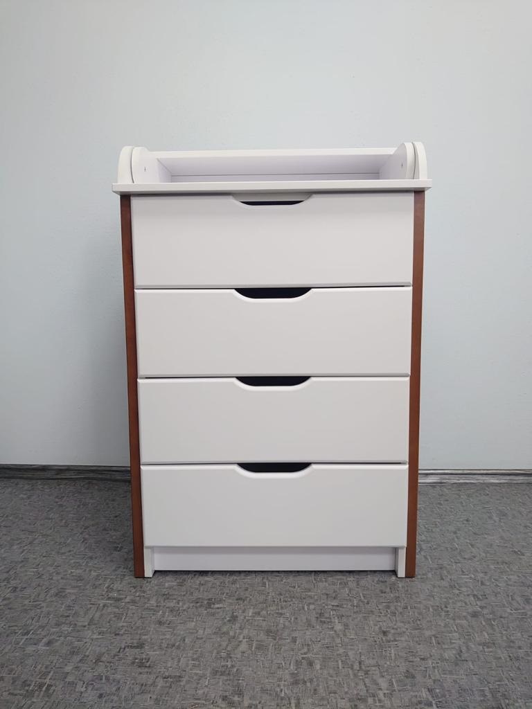 Комод Mika KIDS 800/4 (Мика кидс) - стильное решение для организации удобного хранения детских вещей. Компактные размеры комода позволят легко разместить его даже в ограниченном пространстве. Пеленальный столик удобно расположен на комоде и обеспечит маме комфортное место для переодевания, пеленания ребенка, а так же проведение всех необходимых процедур. Когда комод не нужен он легко складывается, образуя дополнительное место для вещей. 4 вместительных ящика имеют стильные ручки и плавное закрытие/открытие ящиков.
