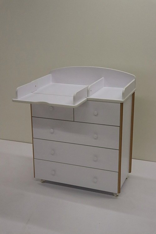 Комод Mika MARITA LUX (Мика марита люкс) - отличное решение для хранения детских вещей. Так же комод оборудован складным пеленальным столиком, который станет незаменимой вещью для ребенка с рождения до примерно 3- месяцев. На такой пеленальной поверхности будет удобно переодевать ребенка, проводить необходимые гигиенические процедуры, массаж. Столик компактно складывается, образуя дополнительную полочку для вещей.