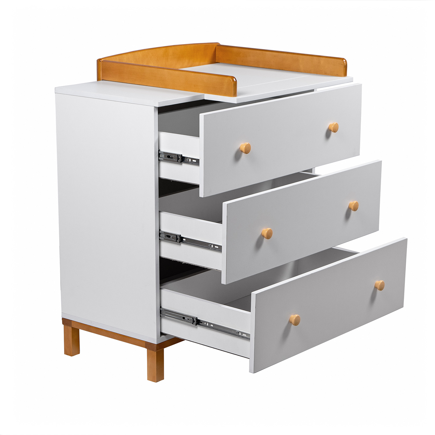 - Нижняя часть комода, ножки, бортики пеленальной доски выполнены из массива березы.