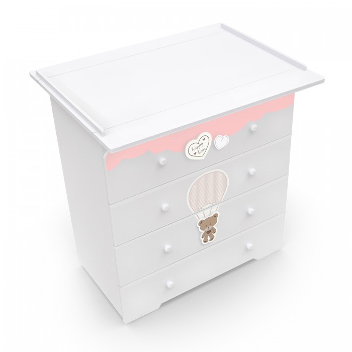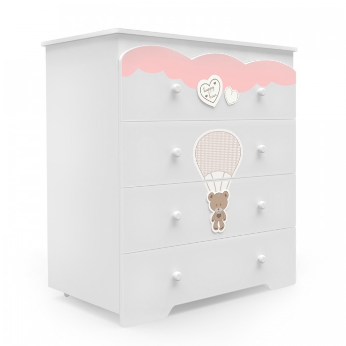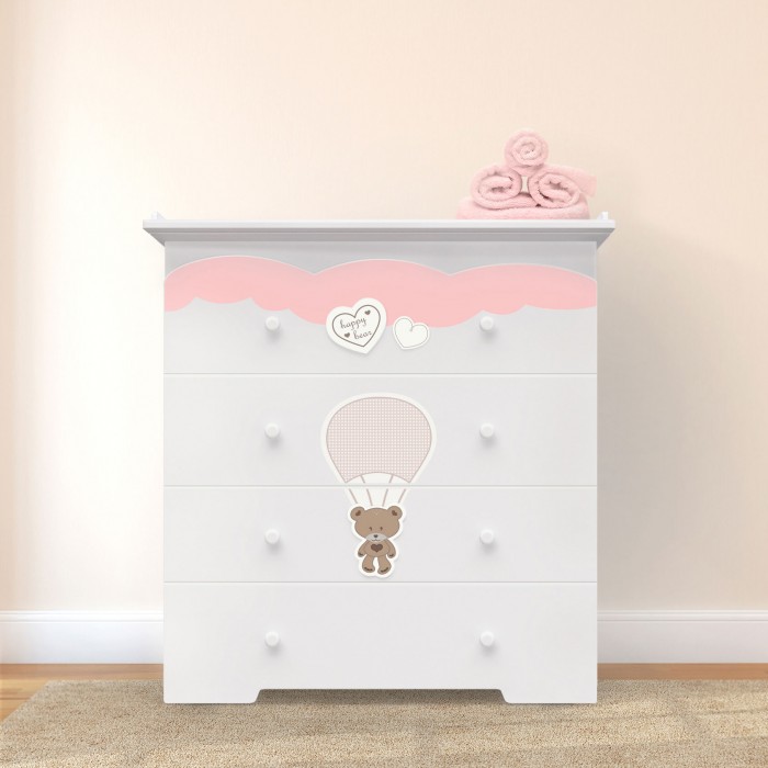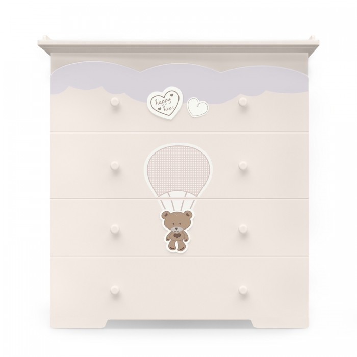 Комод Nuovita Stanzione Cute Bear (Нуовита станзионе кьют биа) - функциональный комод с очень нежным детским дизайном. Комод представляет собой вместительный комод с 4 ящиками, 2 колесами для перемещения и пеленальным съемным столиком.