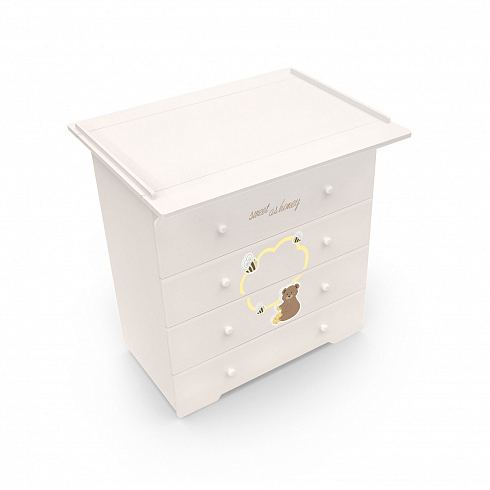 Пеленальный комод Nuovita Stanzione Honey Bear (нуовита станзионе хани биа) - функциональный комод с очень нежным детским дизайном. Комод представляет собой вместительный комод с 4 ящиками, 2 колесами для перемещения и пеленальным съемным столиком.