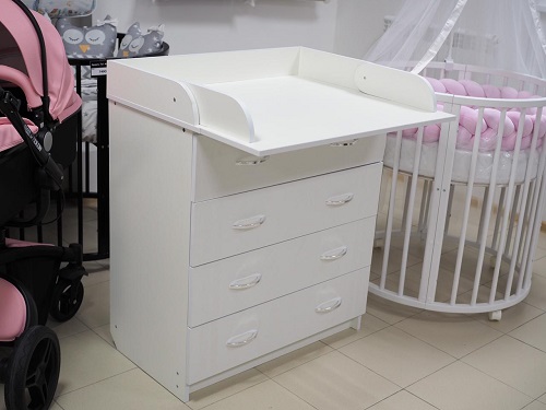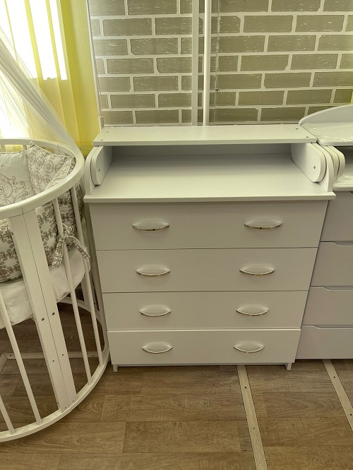 Комод пеленальный Mika Соня (Мика) - качественный и функциональный комод 2 в 1. Это вместительное и удобное место для хранения детских вещей. 4 ящика на роликовых направляющих удобно задвигаются и выдвигаются. На верхней части комода размещен складной столик для пеленания. На такой пеленальной поверхности будет удобно пеленать, переодевать ребенка и осуществлять необходимые гигиенические процедуры. Если пеленальный столик не нужен, то в складном виде его удобно использовать как дополнительные полочки для хранения игрушек и вещей ребенка.