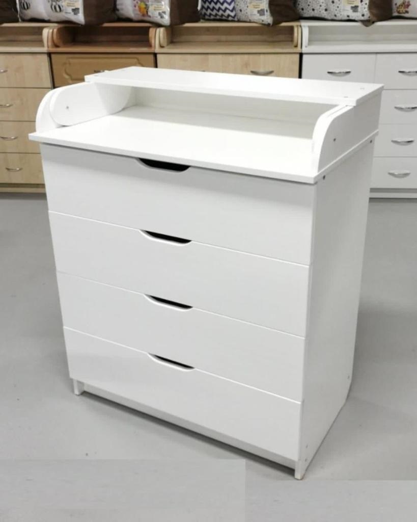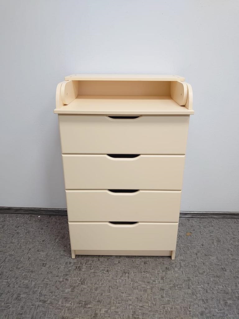 Комод Mika Соня Люкс (Мика) - качественный и функциональный комод 2 в 1. Это вместительное и удобное место для хранения детских вещей. 4 ящика на роликовых направляющих удобно задвигаются и выдвигаются. На верхней части комода размещен складной столик для пеленания. На такой пеленальной поверхности будет удобно пеленать, переодевать ребенка и осуществлять необходимые гигиенические процедуры. Если пеленальный столик не нужен, то в складном виде его удобно использовать как дополнительные полочки для хранения игрушек и вещей ребенка.