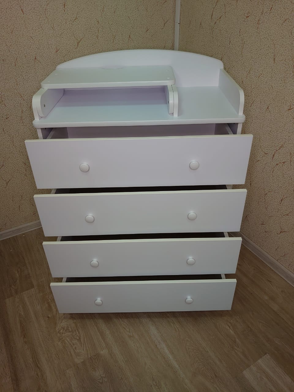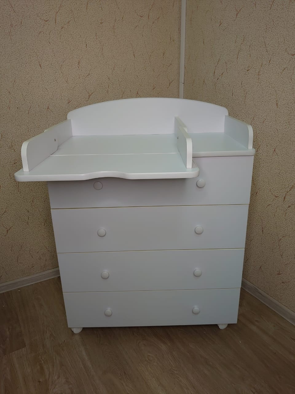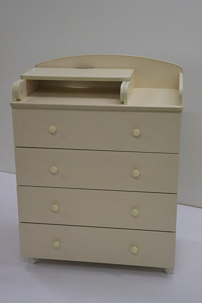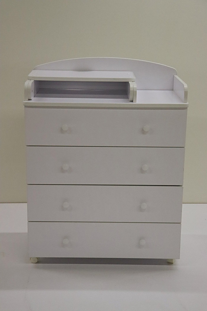 Комод пеленальный Mika 800/4 (Мика) - качественный и функциональный комод 2 в 1. Это вместительное и удобное место для хранения детских вещей. 4 ящика на роликовых направляющих удобно задвигаются и выдвигаются. На верхней части комода размещен складной столик для пеленания. На такой пеленальной поверхности будет удобно пеленать, переодевать ребенка и осуществлять необходимые гигиенические процедуры. Если пеленальный столик не нужен, то в складном виде его удобно использовать как дополнительные полочки для хранения игрушек и вещей ребенка.