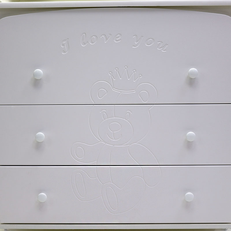 - комодик удивительно красив благодаря гравировке на фасаде в виде забавного медвежонка и милой надписи