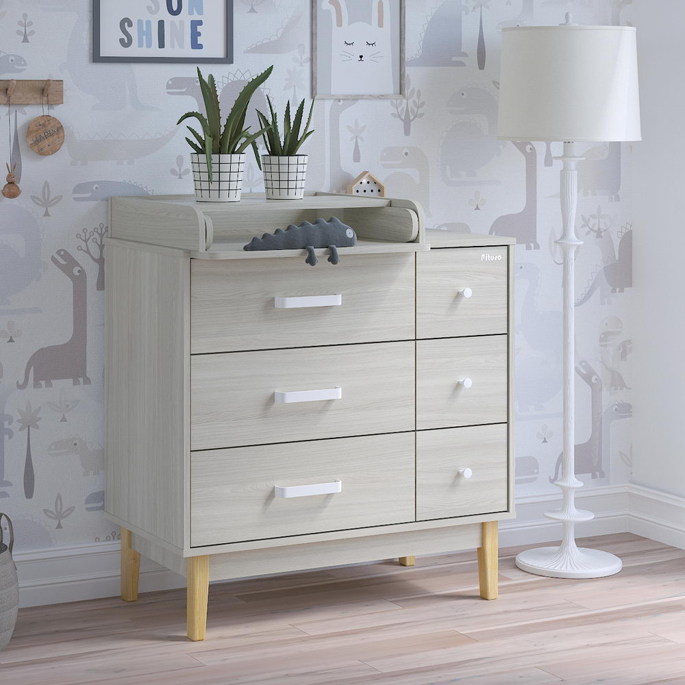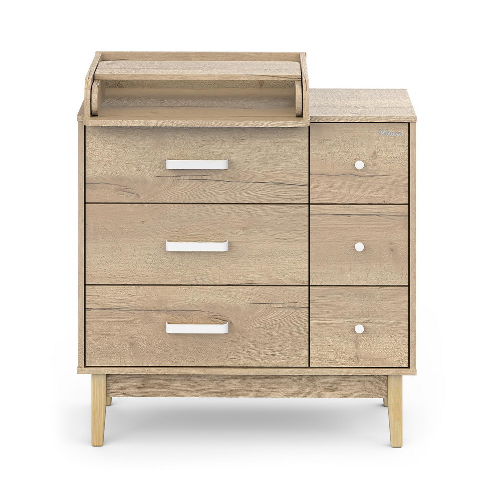 Комод PITUSO Kids Vintage Premium ЛДСП (питусо кидс винтаж премиум) - дизайнерский комод с легкосъемным пеленальным столиком и доводчиками, которые гарантируют тихое открытие и закрытие ящиков. Комод имеет потрясающие расцветки с красивой фактурой дерева, деревянные ножки и большое количество ящиков разного размера. Ящики удобно открываются и закрываются и могут выдержать большую нагрузку.