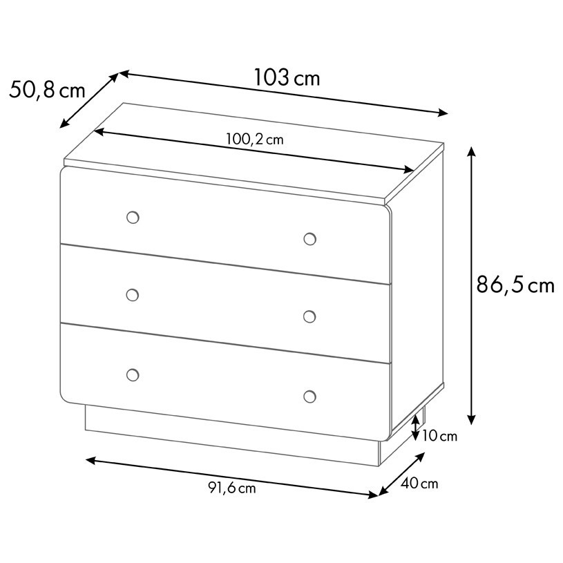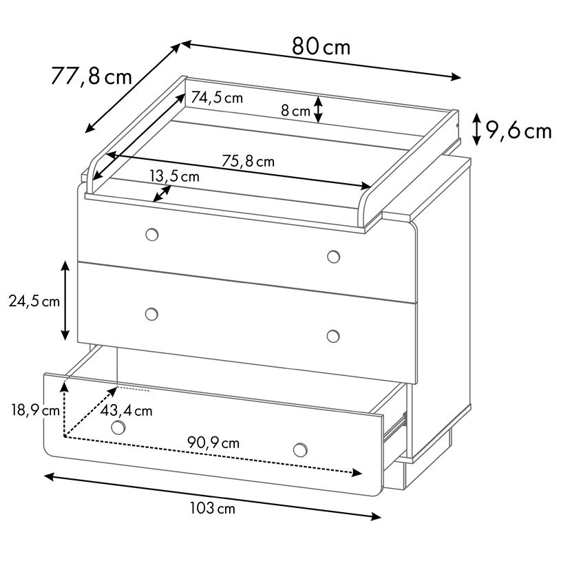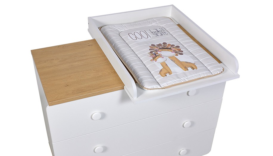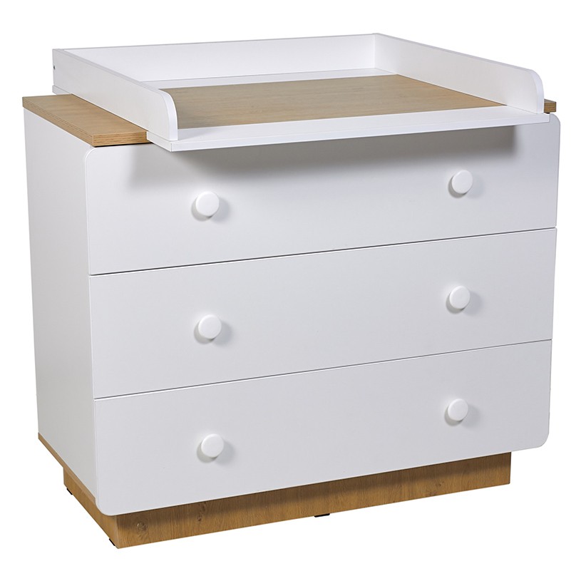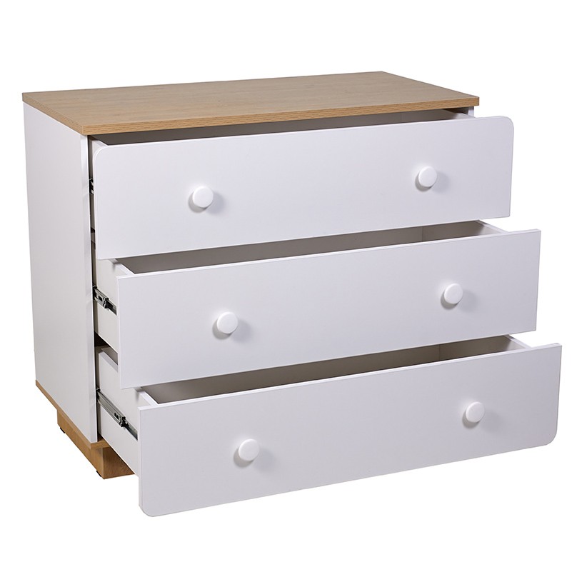 - Комод имеет три выдвижных ящика на шариковых направляющих, в которых с легкостью поместятся все те детские вещи, аксессуары и игрушки, которые должны быть всегда под рукой.