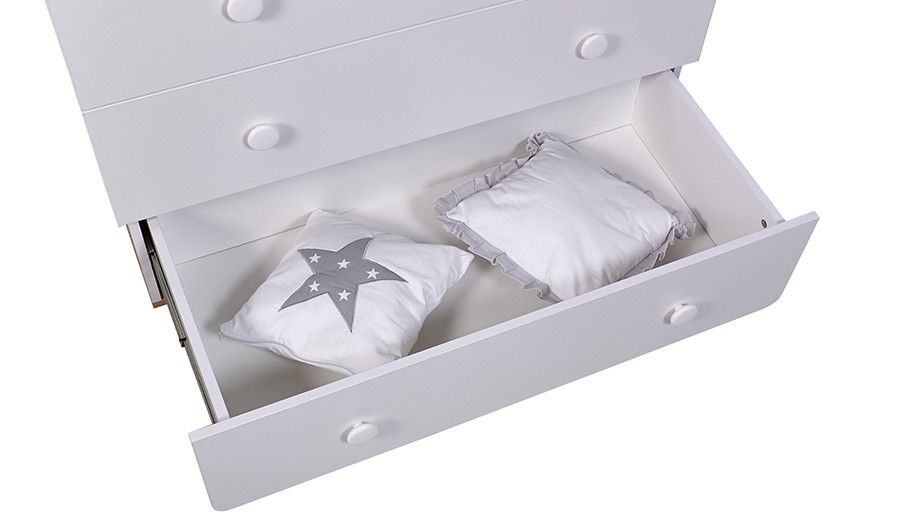 Три вместительных ящика на шариковых направляющих позволят организовать удобное хранение вещей и игрушек ребенка.