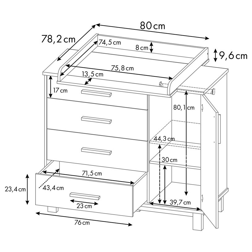 Комод 3403 Simple помимо ящиков оснащен секцией со штангой для одежды, в которой детские вещи будут аккуратно развешены и даже останется место для хранения внизу. Если надобности в использовании штанги нет, то в данный отсек можно установить полочку (идет в комплекте), которая регулируется по высоте, тем самым увеличивая зону для хранения, ведь детских вещей никогда не бывает мало.