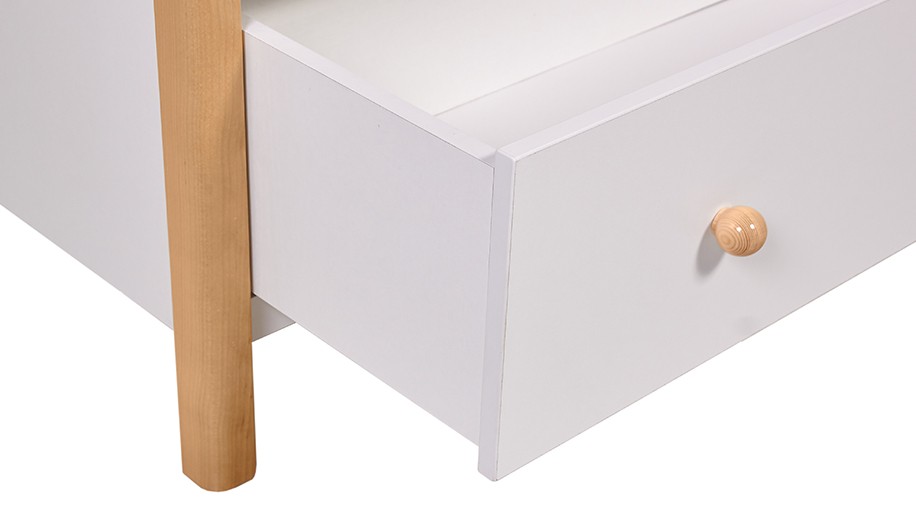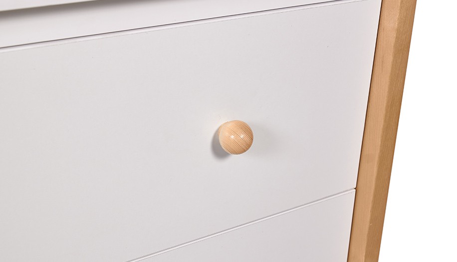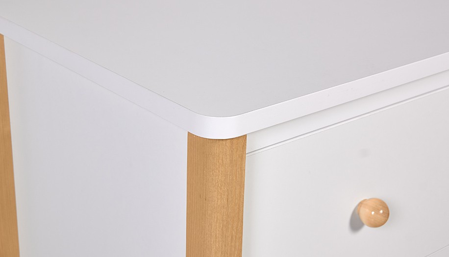 Комод облицован противоударной ПВХ кромкой 2 мм. Данный вид кромки защищает мебельные части от повреждений и воздействия влаги, является безопасным в использовании (невозможно порезаться) и не подвержен деформации за счет своей толщины.