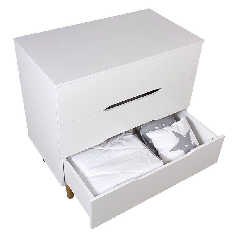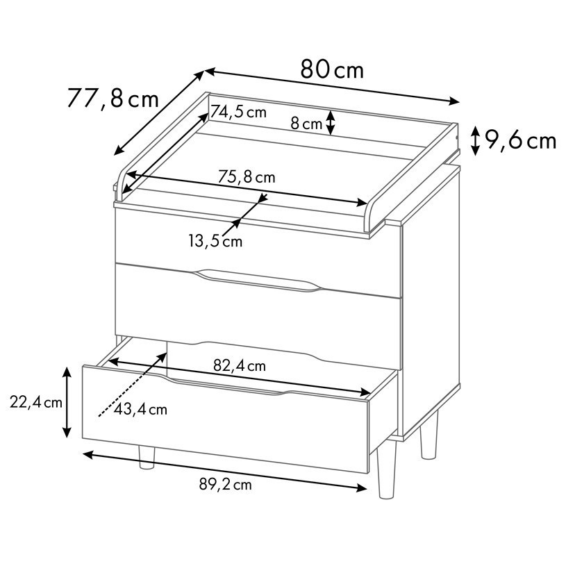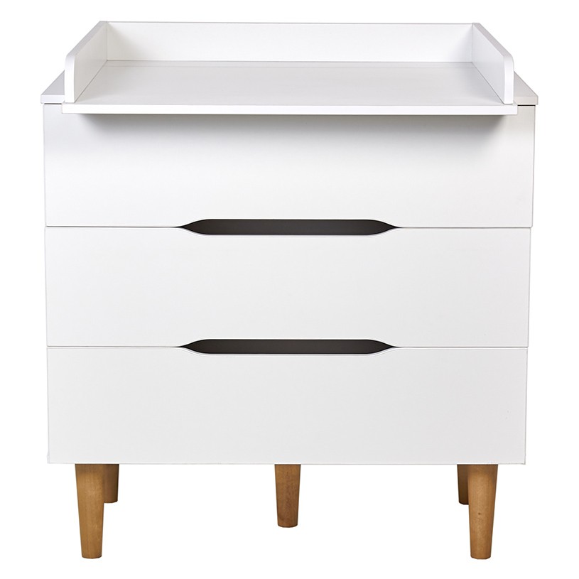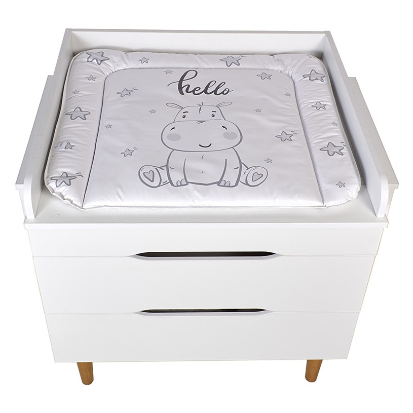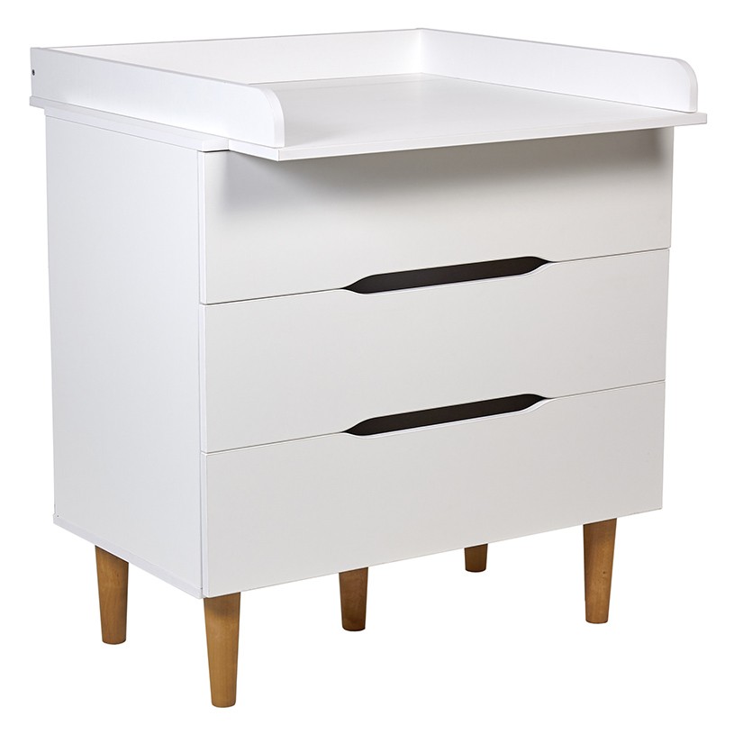 Комод подходит для пеленания малышей благодаря возможности установки пеленальной рамы с бортиками, которая гарантирует удобство в уходе за ребенком и безопасность. Когда потребность в пеленании малыша отпадает, то рамка легко снимается, освобождая место для расположения предметов на топе комода.