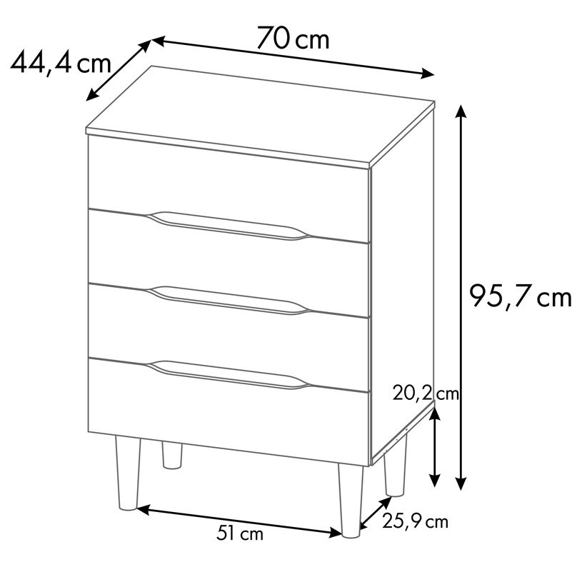 - 4 выдвижных ящика на шариковых направляющих;