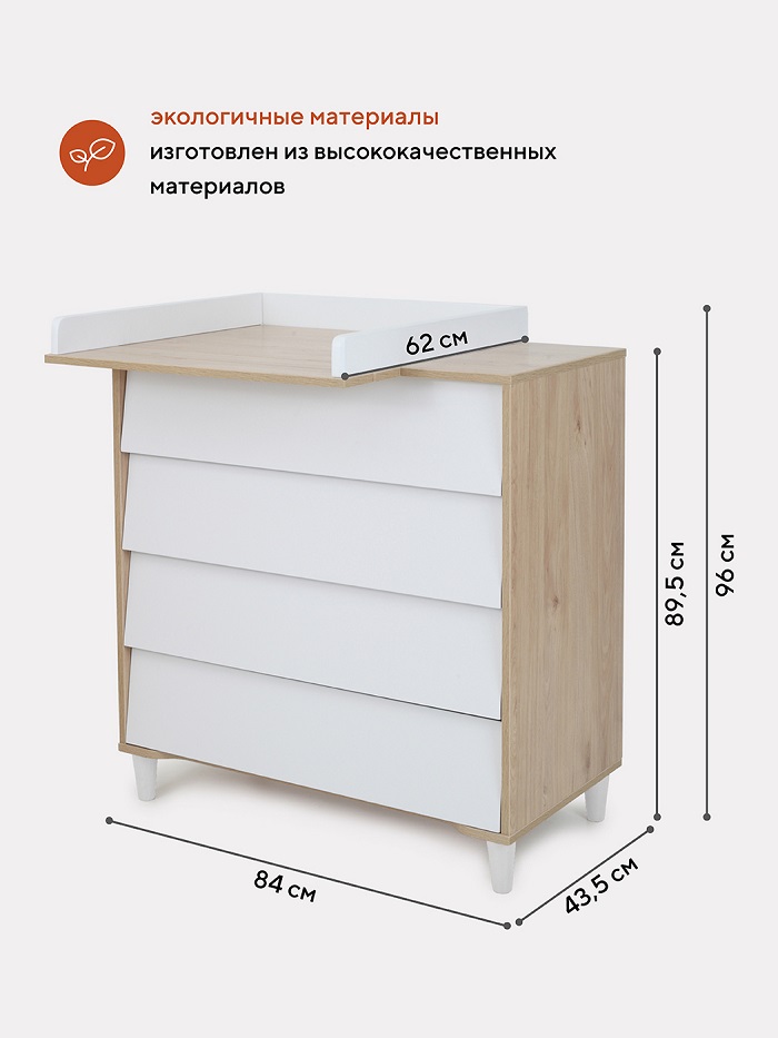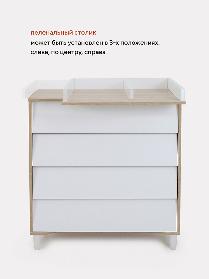 - комод дополнен откидным бортиком, превращающим его в полноценный пеленальный столик. Когда малыш подрастёт, бортик можно будет снять.