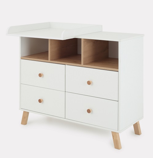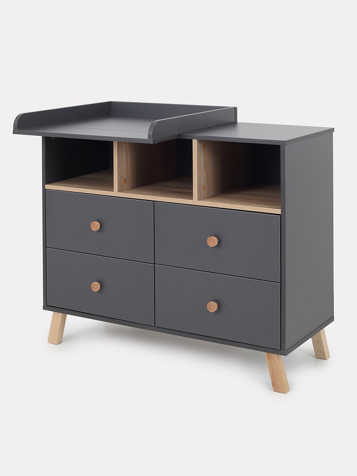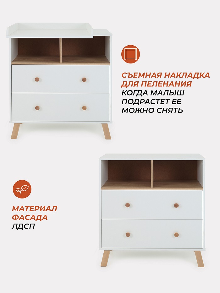 Благодаря пеленальной рамке, которая идут в комплекте, комод за несколько секунд превращается в пеленальный. Вы сможете на удобной для вас высоте переодевать, пеленать ребенка, проводить все гигиенические процедуры. Рамку можно установить с правой или левой стороны, чтобы вам было максимально удобно, а оставшееся место использовать как доп полочку. Пеленальная рамка не оставляет следов, легко снимается и позволяем пользоваться комодом как бельевым.
