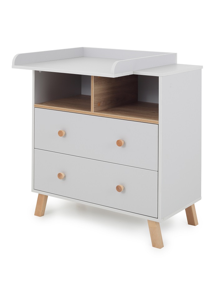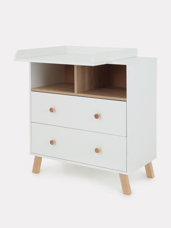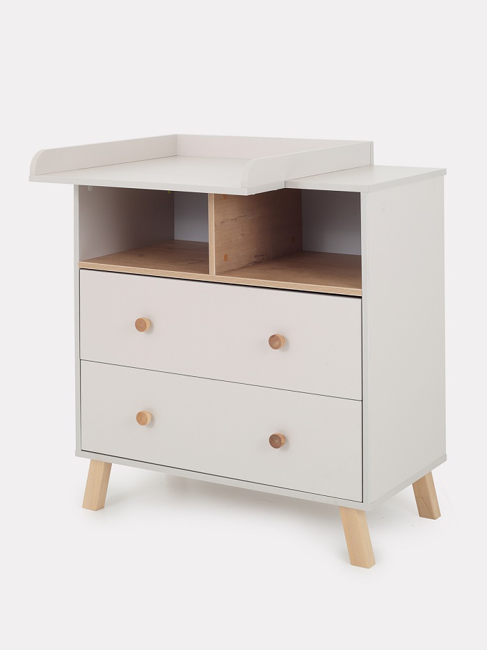 Благодаря пеленальной рамке, которая идут в комплекте, комод за несколько секунд превращается в пеленальный. Вы сможете на удобной для вас высоте переодевать, пеленать ребенка, проводить все гигиенические процедуры. Рамку можно установить с правой или левой стороны, чтобы вам было максимально удобно, а оставшееся место использовать как доп полочку. Пеленальная рамка не оставляет следов, легко снимается и позволяем пользоваться комодом как бельевым.