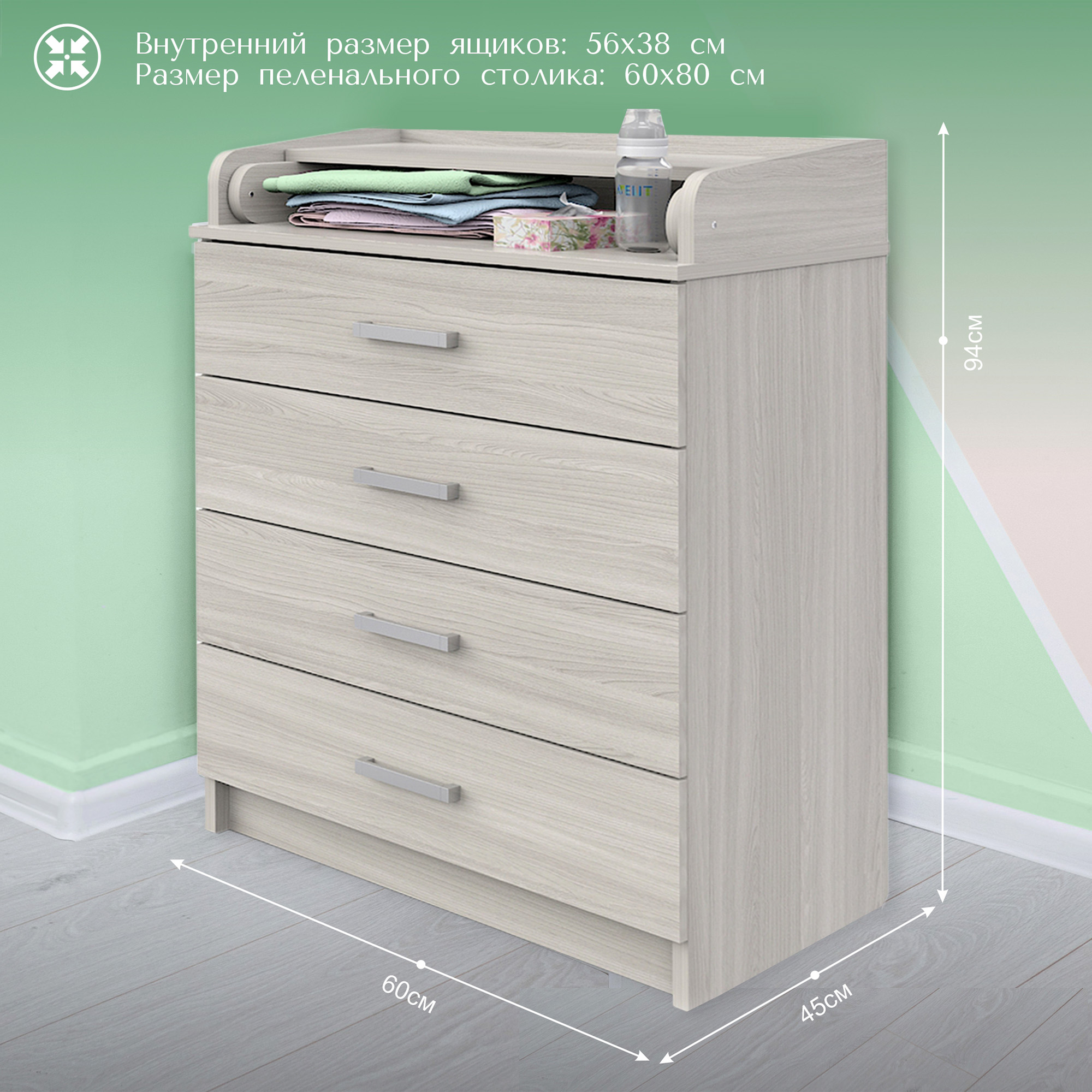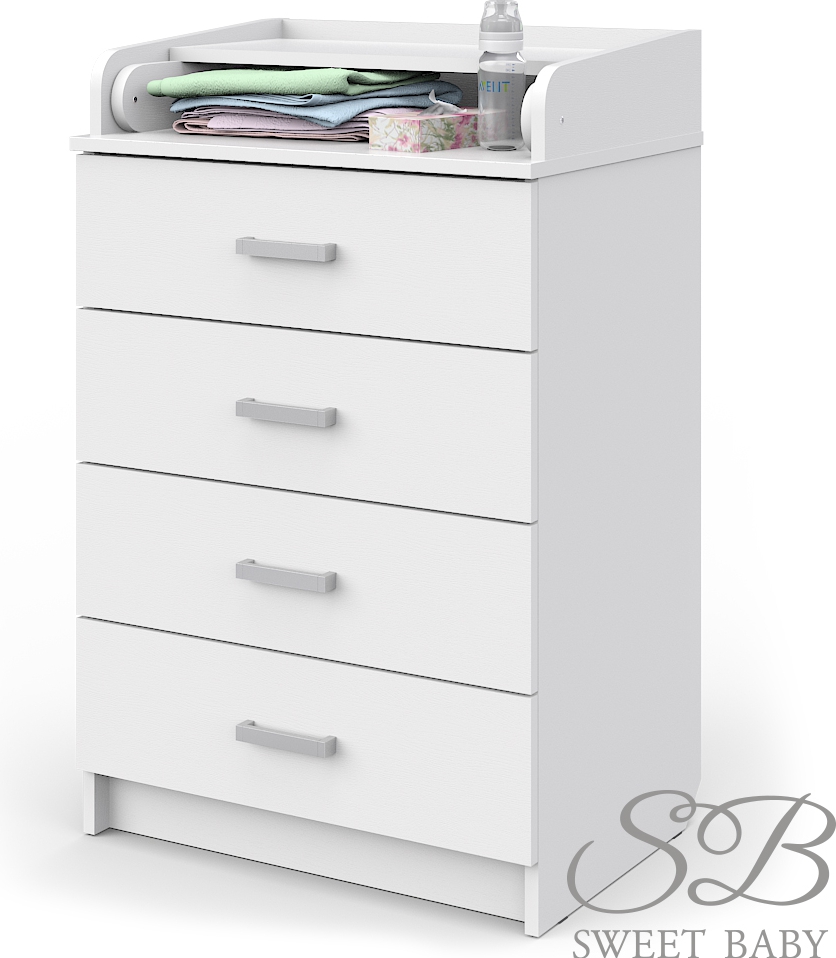 Комод Sweet Baby Lauto Basic 60 см (Свит беби лауто бейсик) - практичный комод небольших размеров с пеленальным столиком. Такой комод отлично впишется в небольшой уголок или компактную детскую комнату, ведь ширина комода всего 60 см. При этом в комоде предусмотрено 4 вместительных ящика и складной пеленальный столик. В сложенном виде столик можно использовать как дополнительное место для хранения вещей и косметики ребенка. В разложенном виде это удобное место для пеленания ребенка с бортиками безопасности по бокам. Комод выполнен из качественных и безопасных для ребенка материалов, что гарантирует качество и надежность изделия.