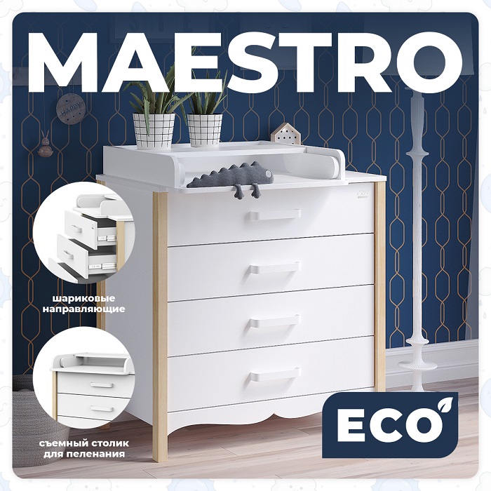 Комод Sweet Baby Maestro (Свит беби маестро) - красивый, элегантный комод с большим функционалом. Комод от итальянских дизайнеров выполнен из качественного ЛДСП, украшен оригинальными массивными ручками и элегантным декором. Современные расцветки позволяют не только подобрать комод к другой мебели, но и интересно обыграть его в детской или гостиной. Комод оснащен деревянными ножками, что гарантирует его устойчивость и безопасность. Четыре вместительных ящика на шариковых направляющих бесшумно открываются и закрываются, выдерживают большую нагрузку.