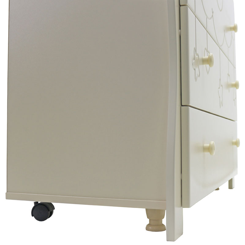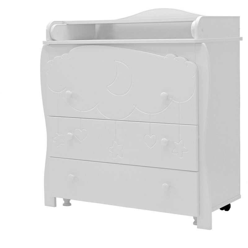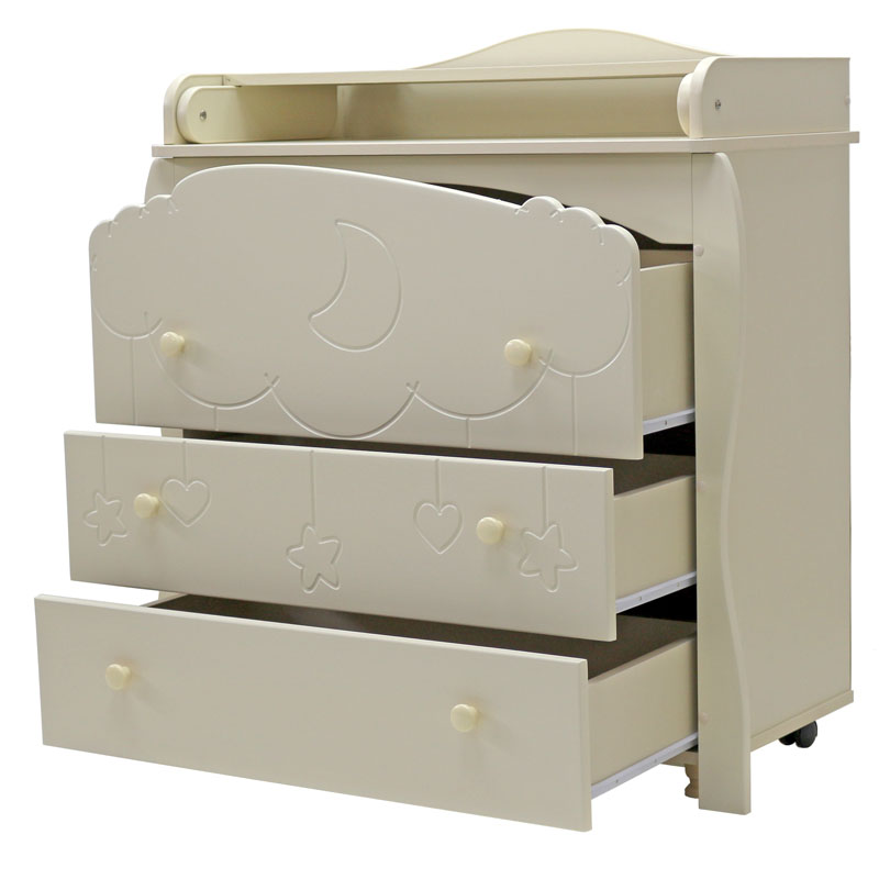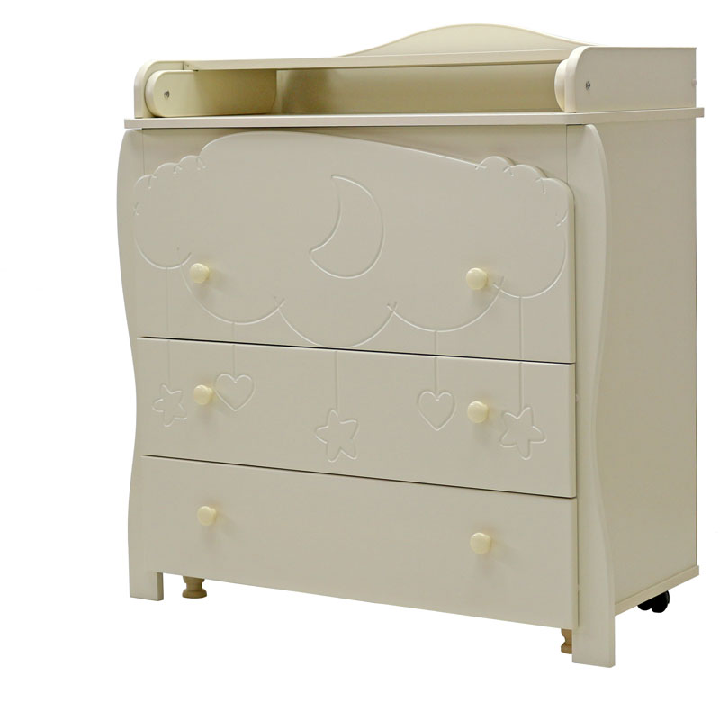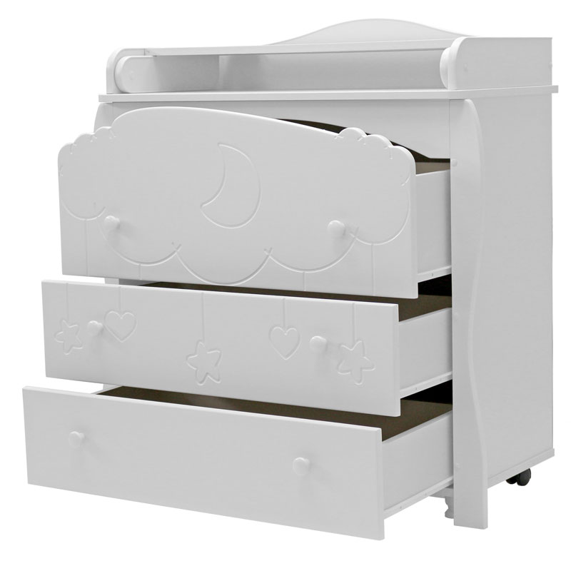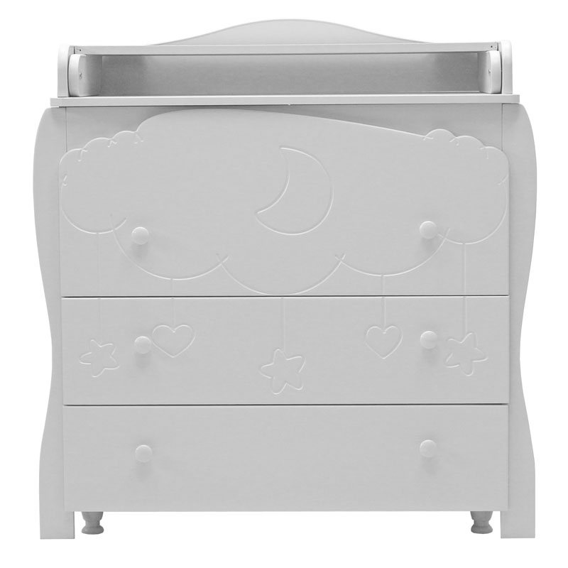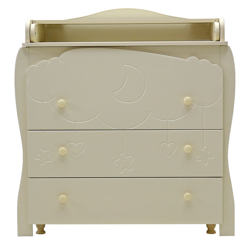 - комодик удивительно красив благодаря гравировке на фасаде в виде облака с ниспадающими игрушками (сердечками, звездочками)