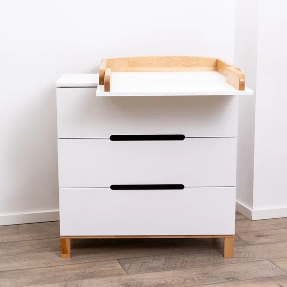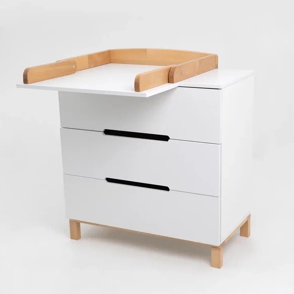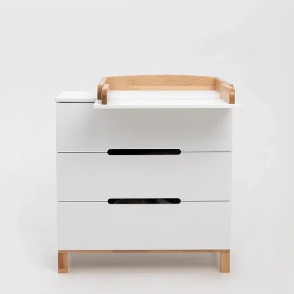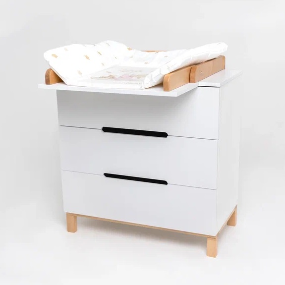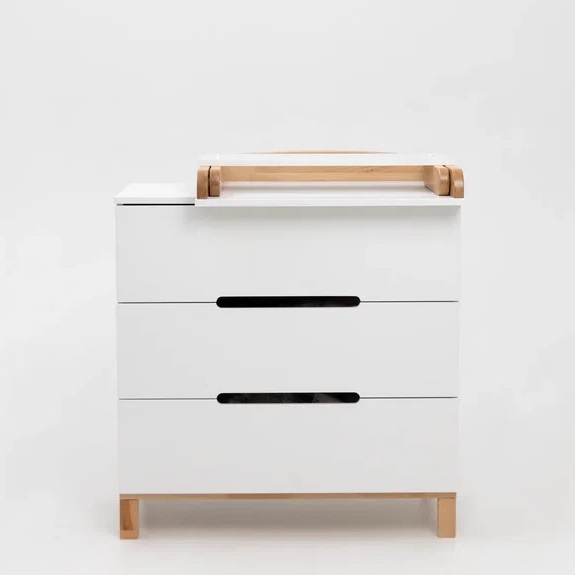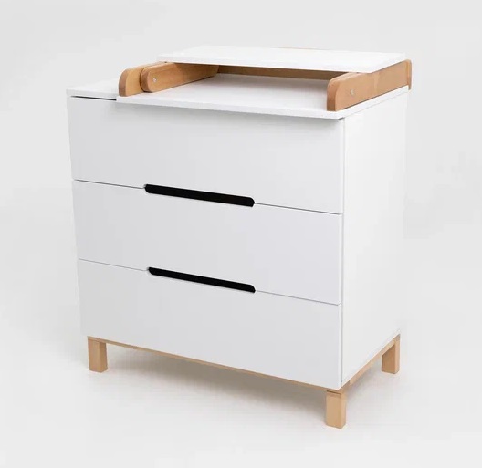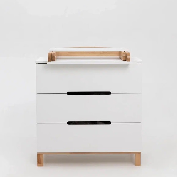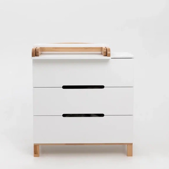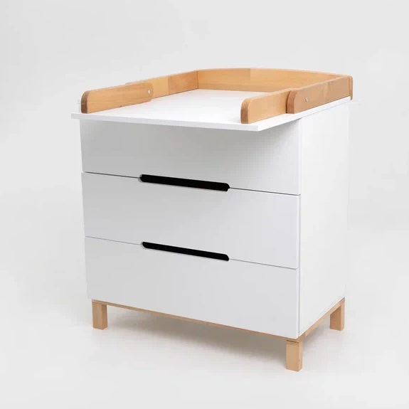 Детский комод оснащен 3 глубокими ящиками. В них легко поместятся средства для ухода, пелёнки, одежда и постельное белье. Плавный и тихий ход выдвижных ящиков не потревожит сон малыша, а ножки из натурального дерева придают комоду большую устойчивость, а так же упростят уборка.