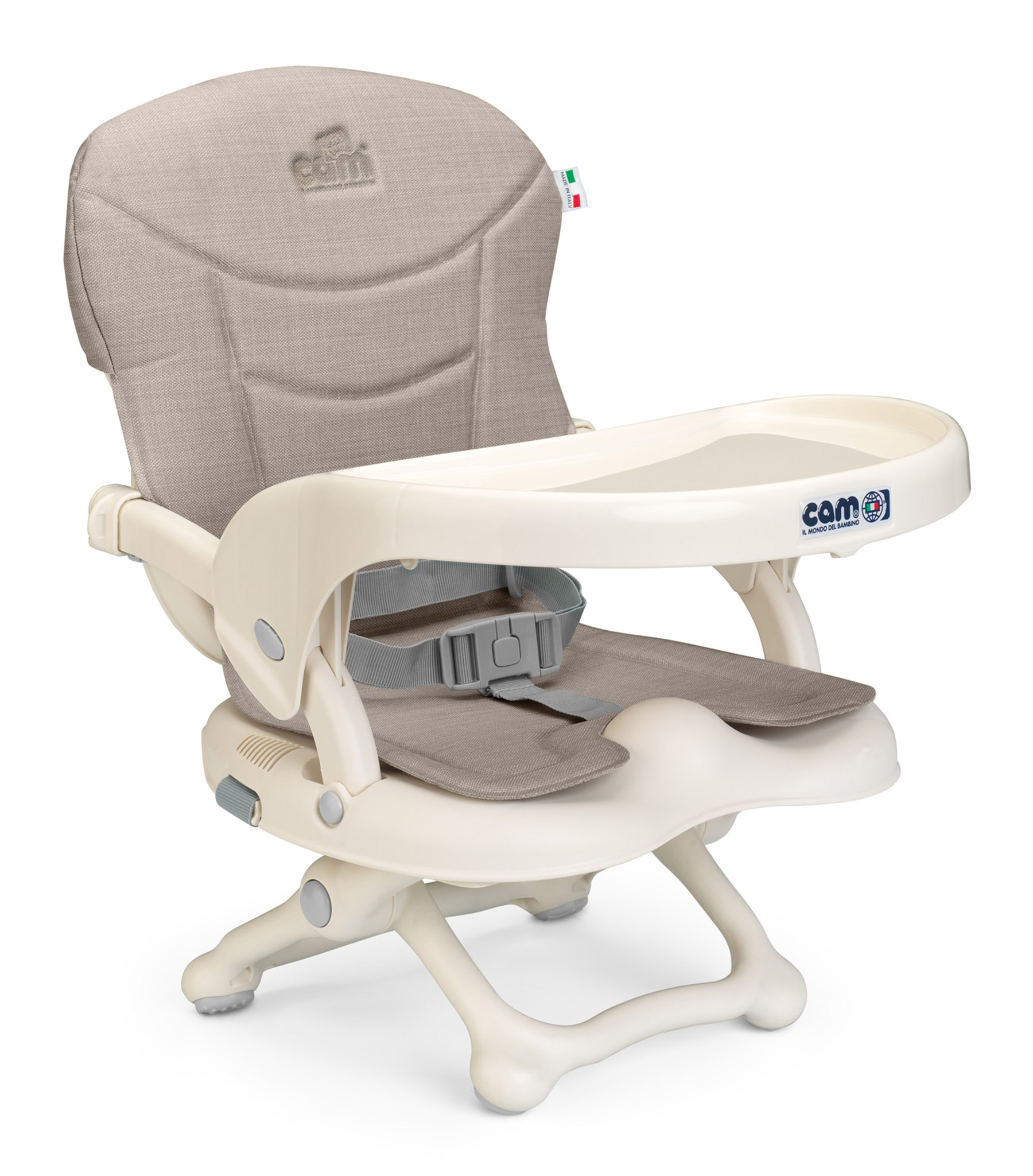 Компактный стул для ребенка Cam Smarty / Smarty Pop (Кам Смарти Поп) - очень легкий и компактный стул для кормления ребенка, который уже сидит. Стул состоит из удобного сидения с мягким матрасиком и регулируемыми по высоте ножками, которые могут убираться. За счет такой простой и безопасной конструкции ребенку будет удобно и безопасно сидеть на взрослом стуле или на мягкой мебели. Стул очень компактен и весит чуть больше 1 кг. Его можно убирать в любой ящик или полочку, когда вы им не пользуетесь. Его можно брать с собой в дорогу, путешествие, в гости. Его легко мыть, а чехол можно снять и постирать.