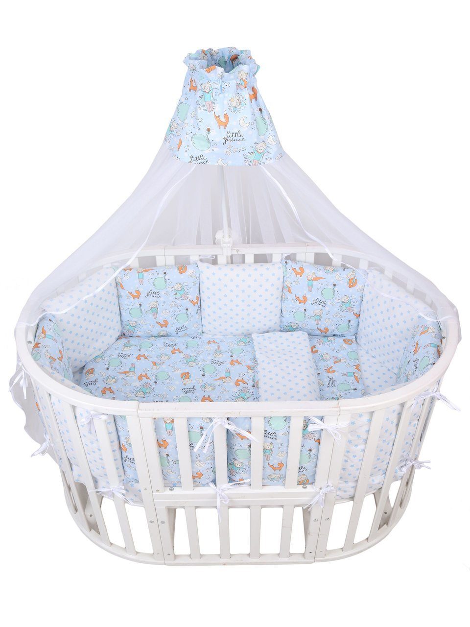 Комплект в кроватку Amarobaby Premium (6+12 бортиков) (Амаробеби премиум) -идеальный комплект для детской кроватки. Подойдет для круглой, овальной, классической кровати. В комплекте есть все необходимое для качественного и комфортного сна ребенка: бортики, простынь, балдахин, одеялко и подушечка.