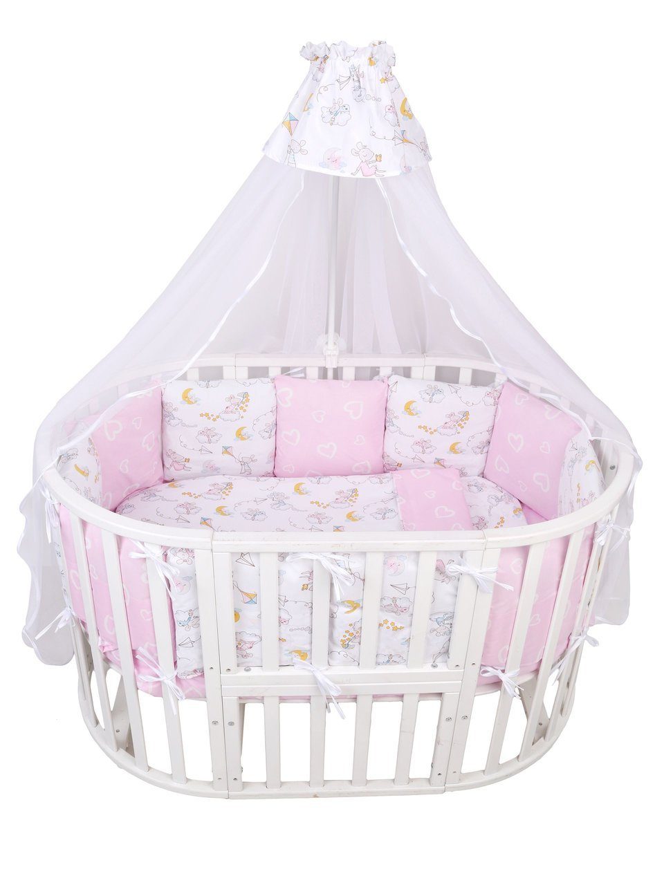 Купить комплект в круглую, овальную, классическую кровать Amarobaby Premium (18 предметов с балдахином )(Амаробеби премиум) в нашем магазине очень просто — Вам достаточно оформить заказ онлайн на сайте или по телефону +8(925)266-83-06. Мы доставим товар в самое короткое время по Москве и Подмосковью (бесплатно до 10 км за МКАД). Так же отправляем в любой город России, в Армению, в Киргизию, в Крым, в республику Беларусь с помощью транспортной компании.