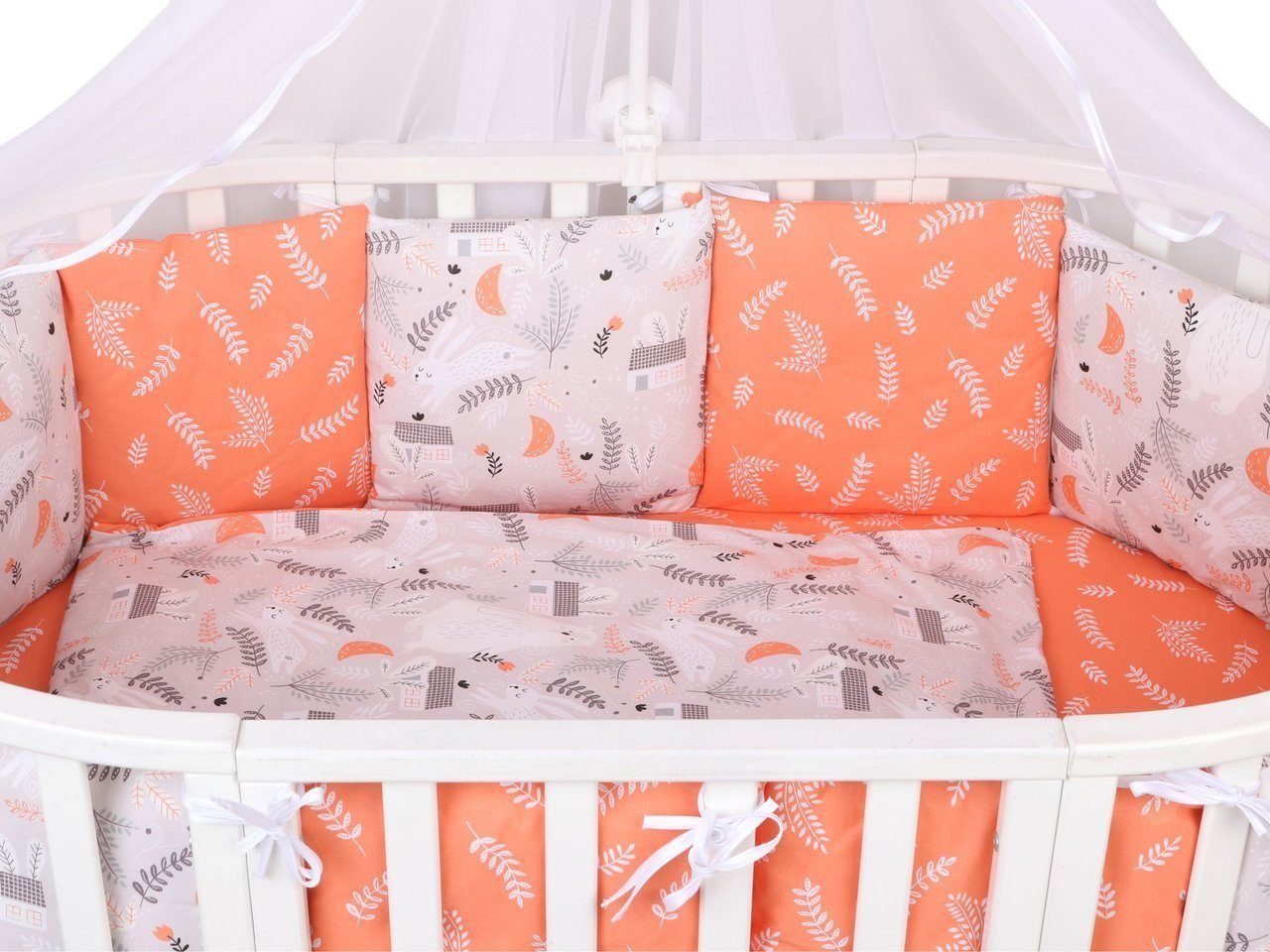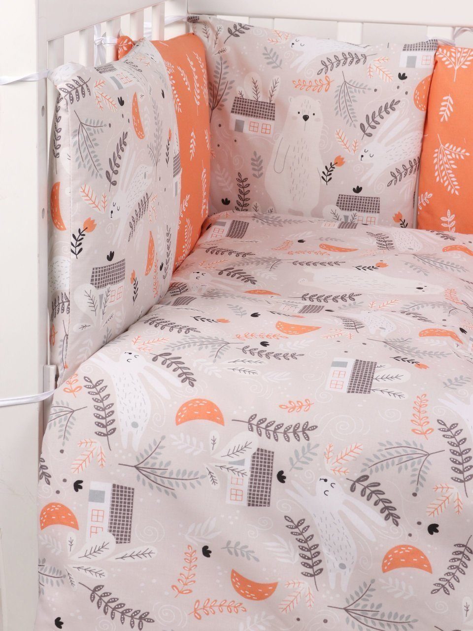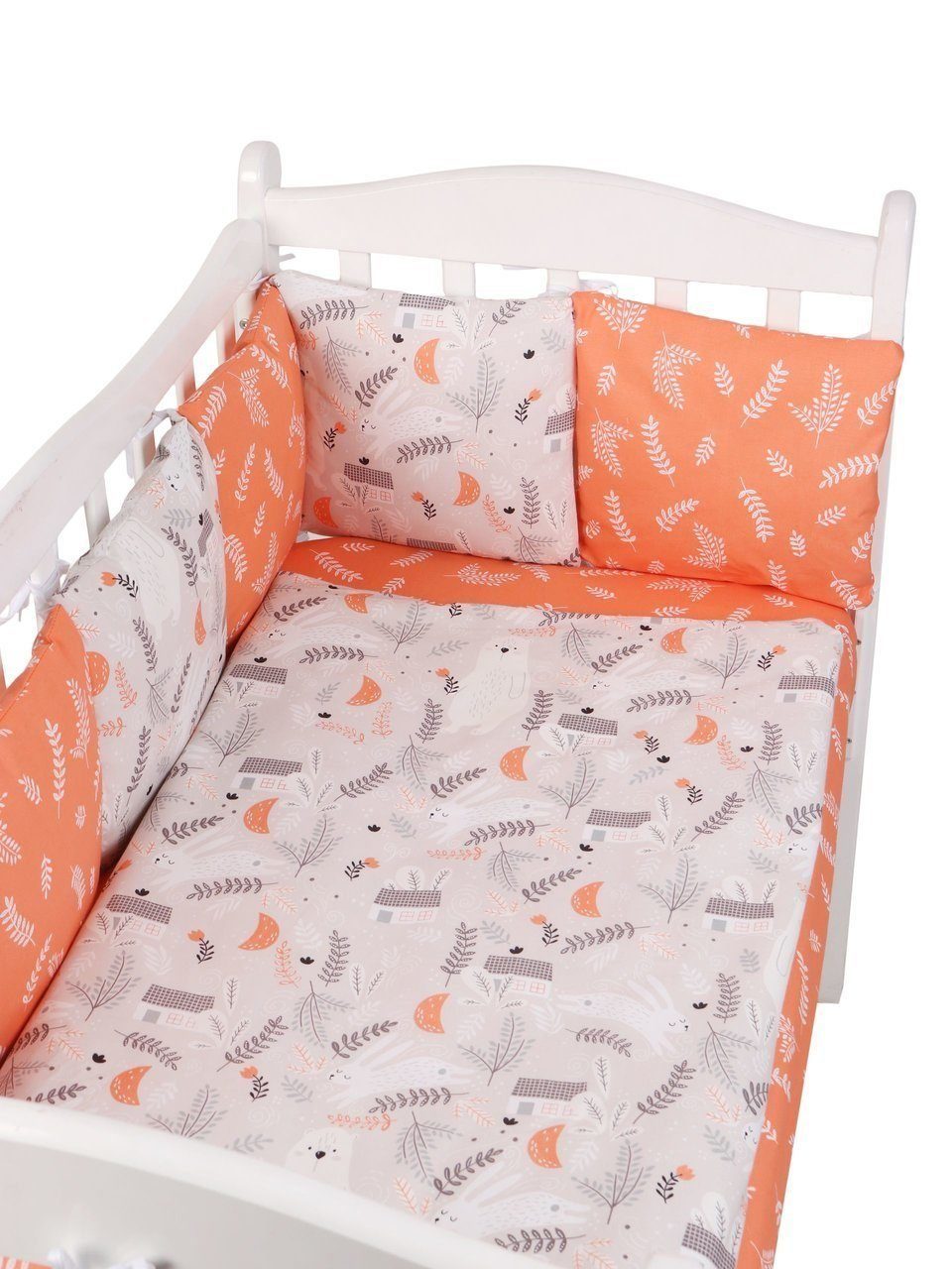 Бортик комплекта постельного белья представлен в виде 12ти подушек на завязках, наволочки на бортиках съёмные, на молнии. Мягкий наполнитель бортиков детского комплекта постельного белья обезопасит сон вашего малыша.