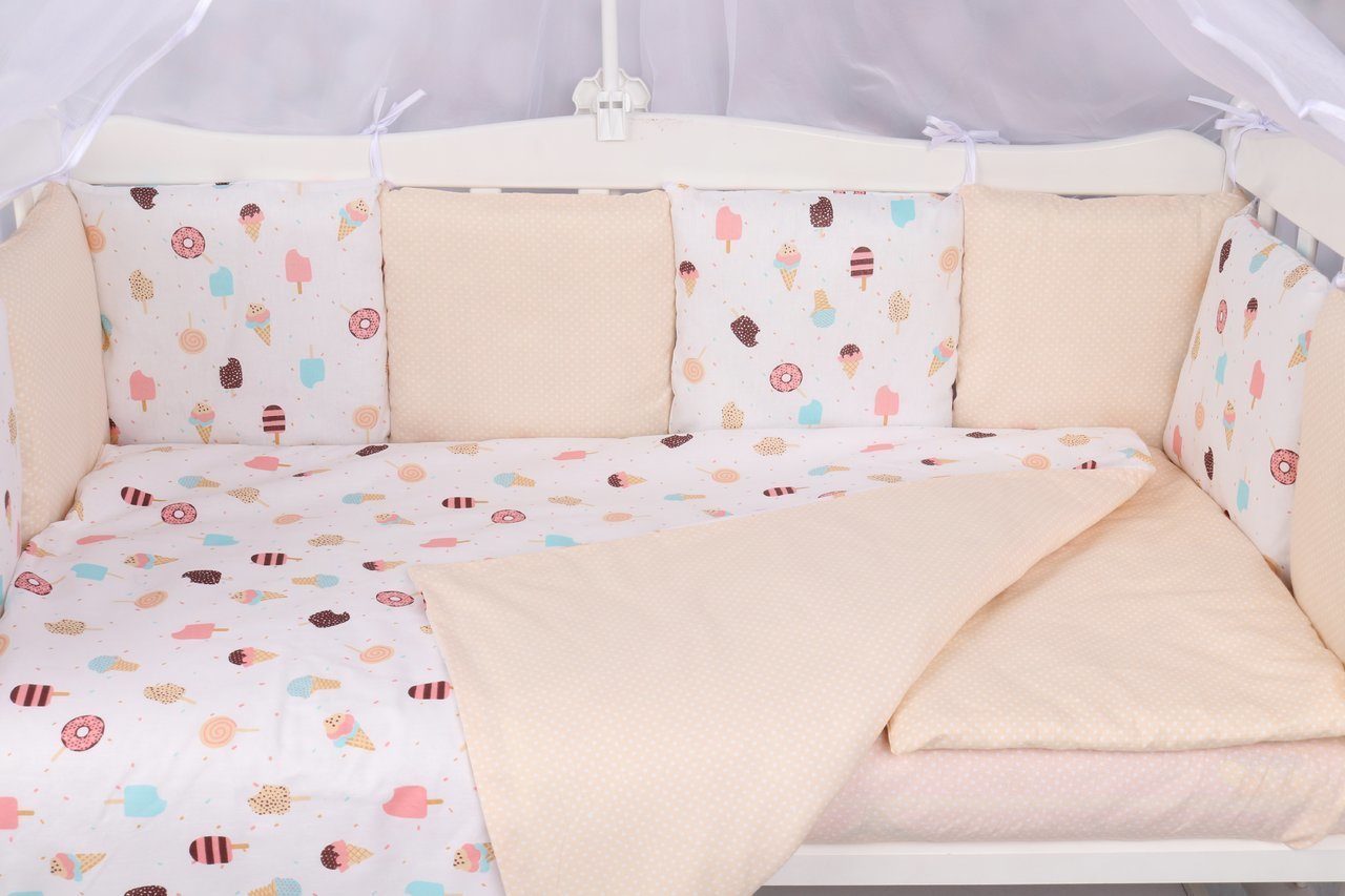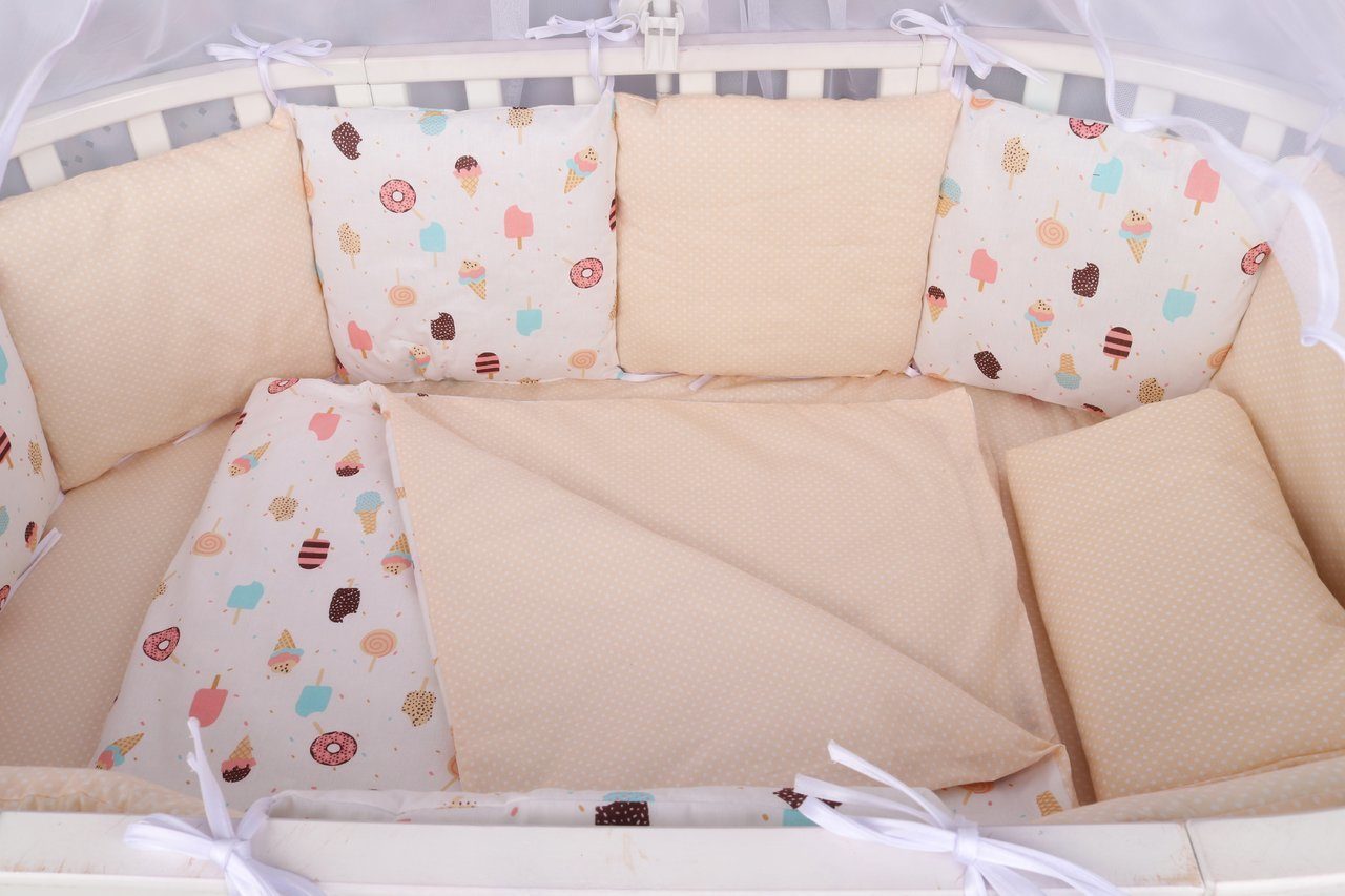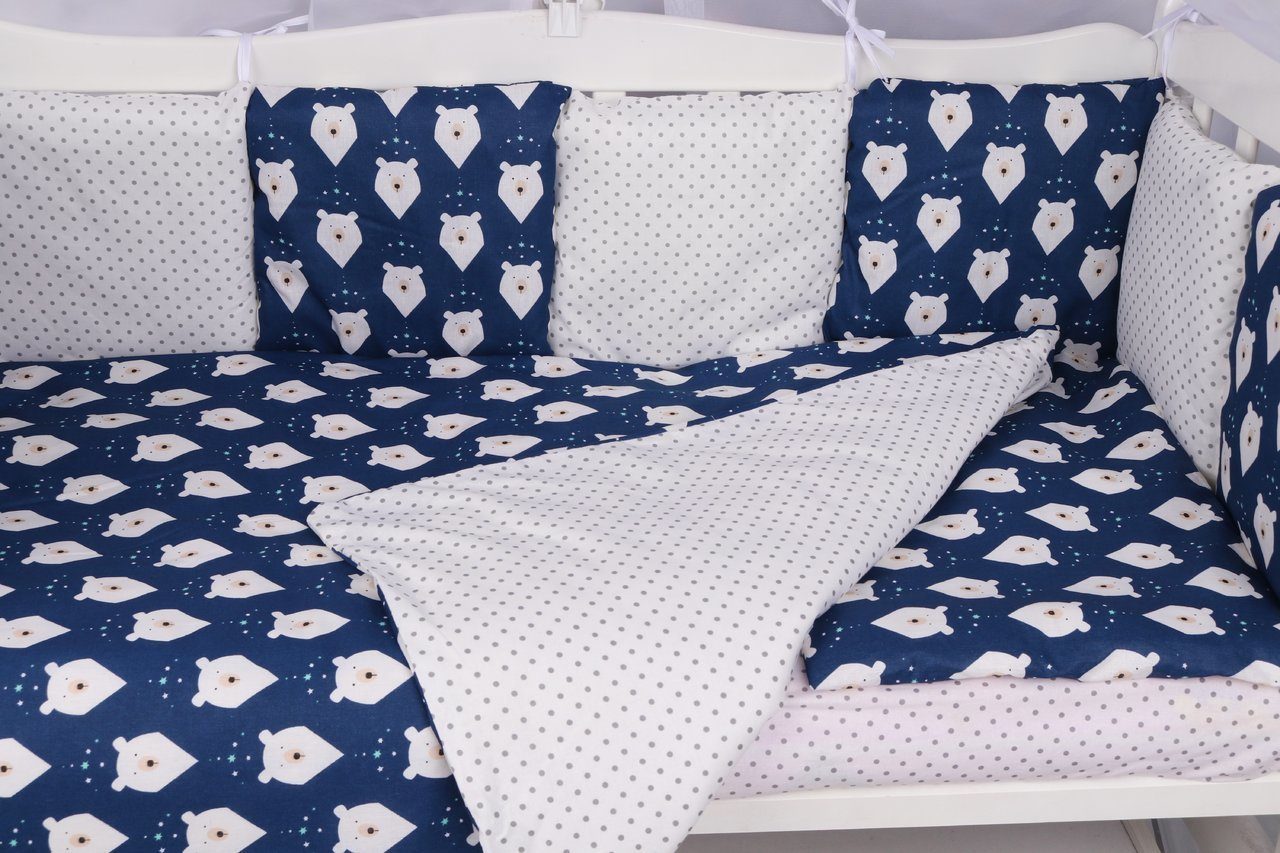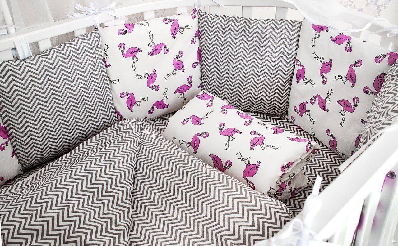 Российское производство. 100 % хлопок (бязь). – Борта представлены в виде 12 подушек - простыня на резинке – Подушки-бортики на завязках - Большое количество расцветок – Отличное качество