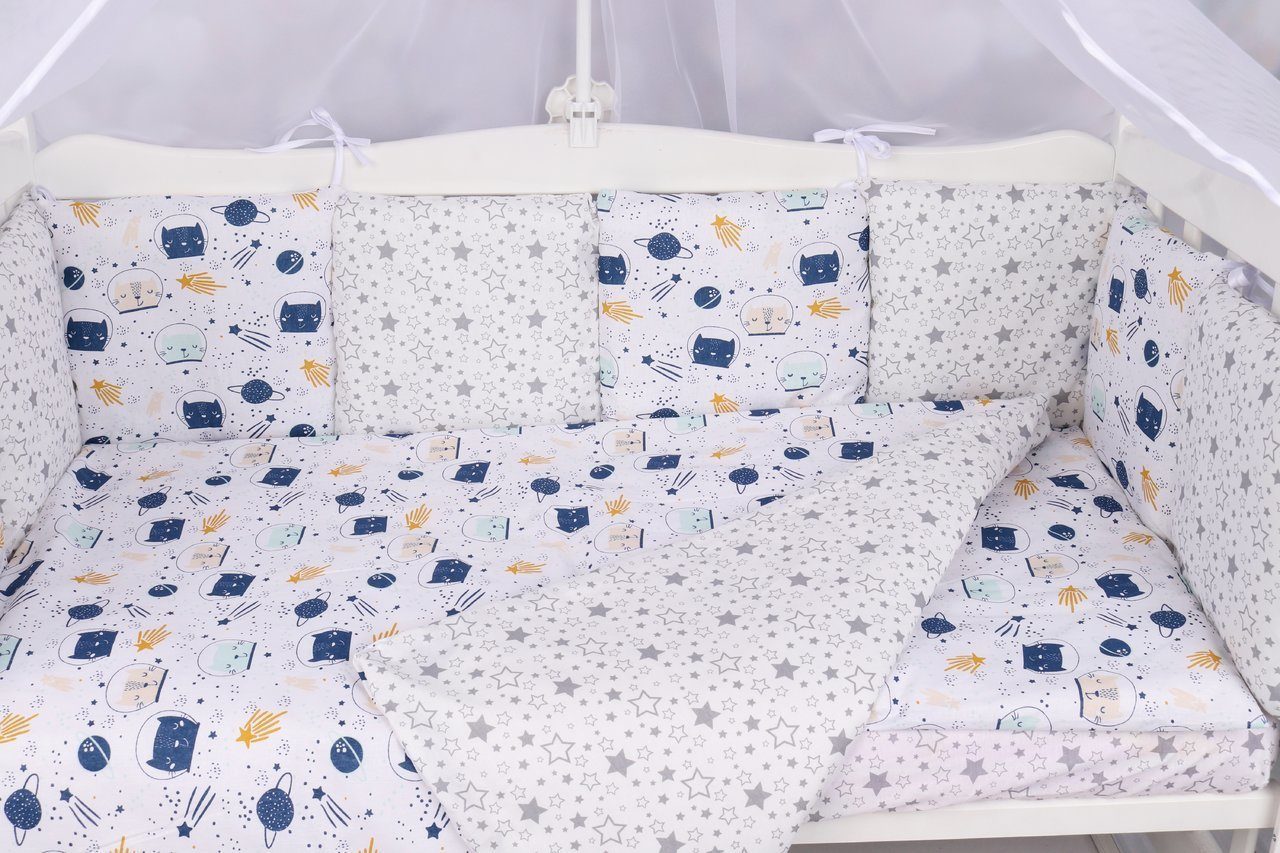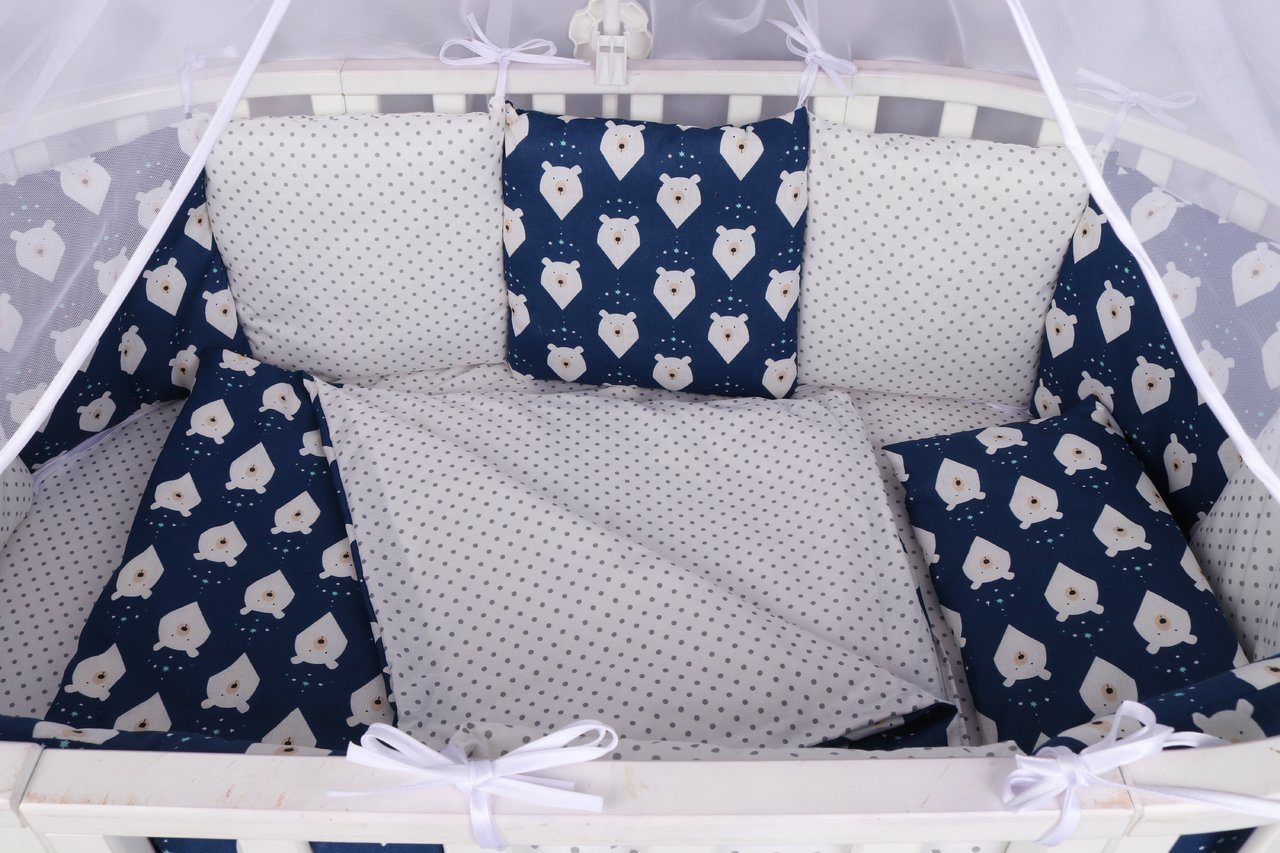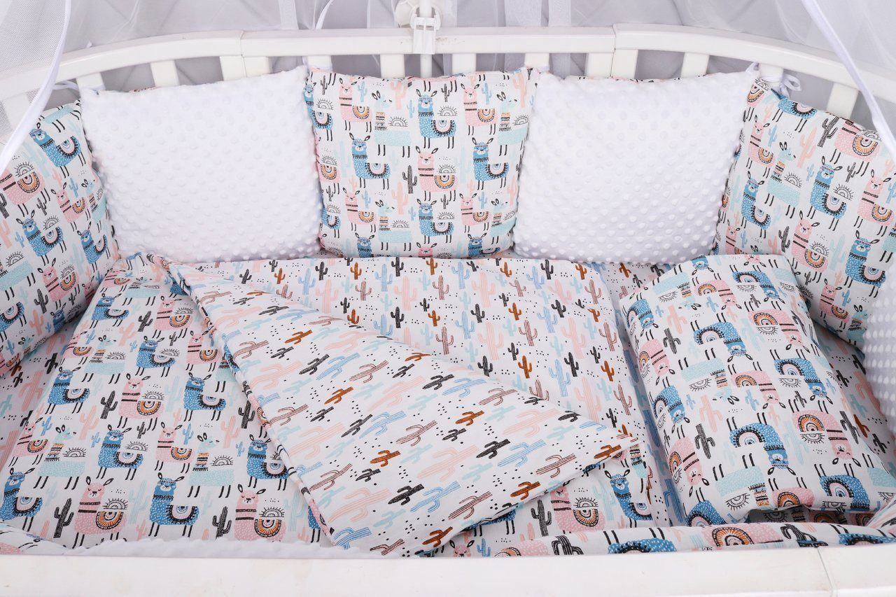 Российское производство. 100 % хлопок (бязь). – Борта представлены в виде 12 подушек - простыня на резинке – Подушки-бортики на завязках - Большое количество расцветок – Отличное качество