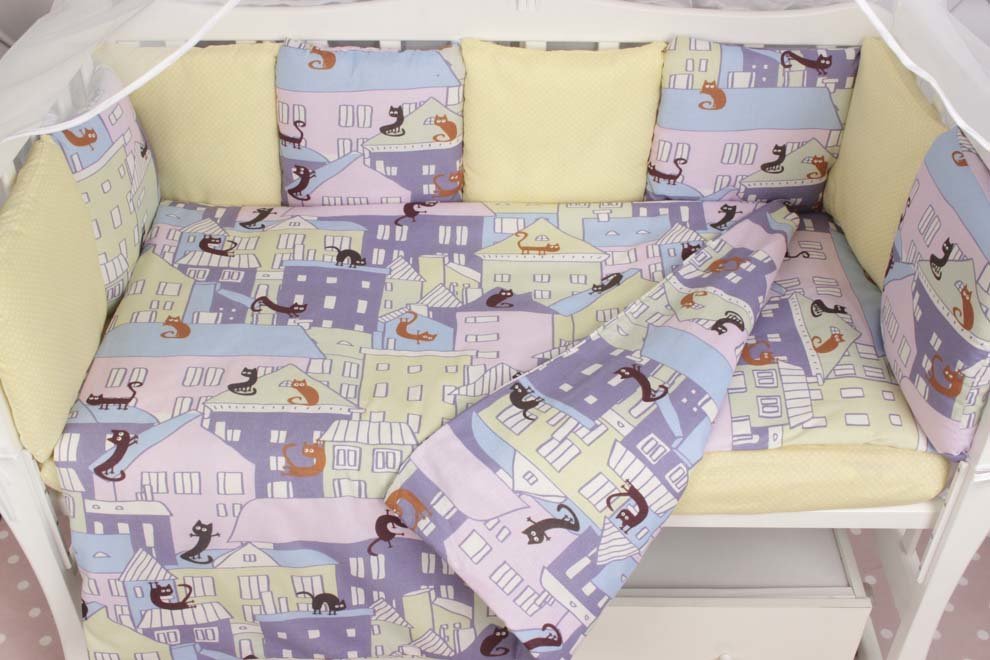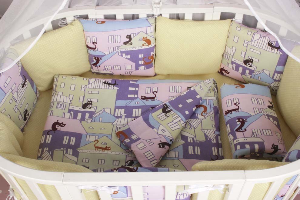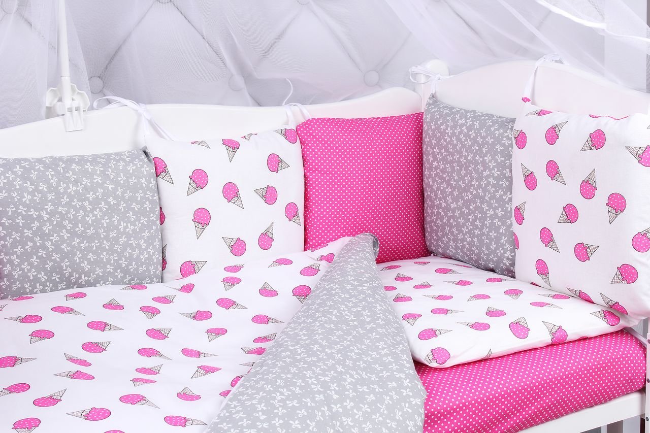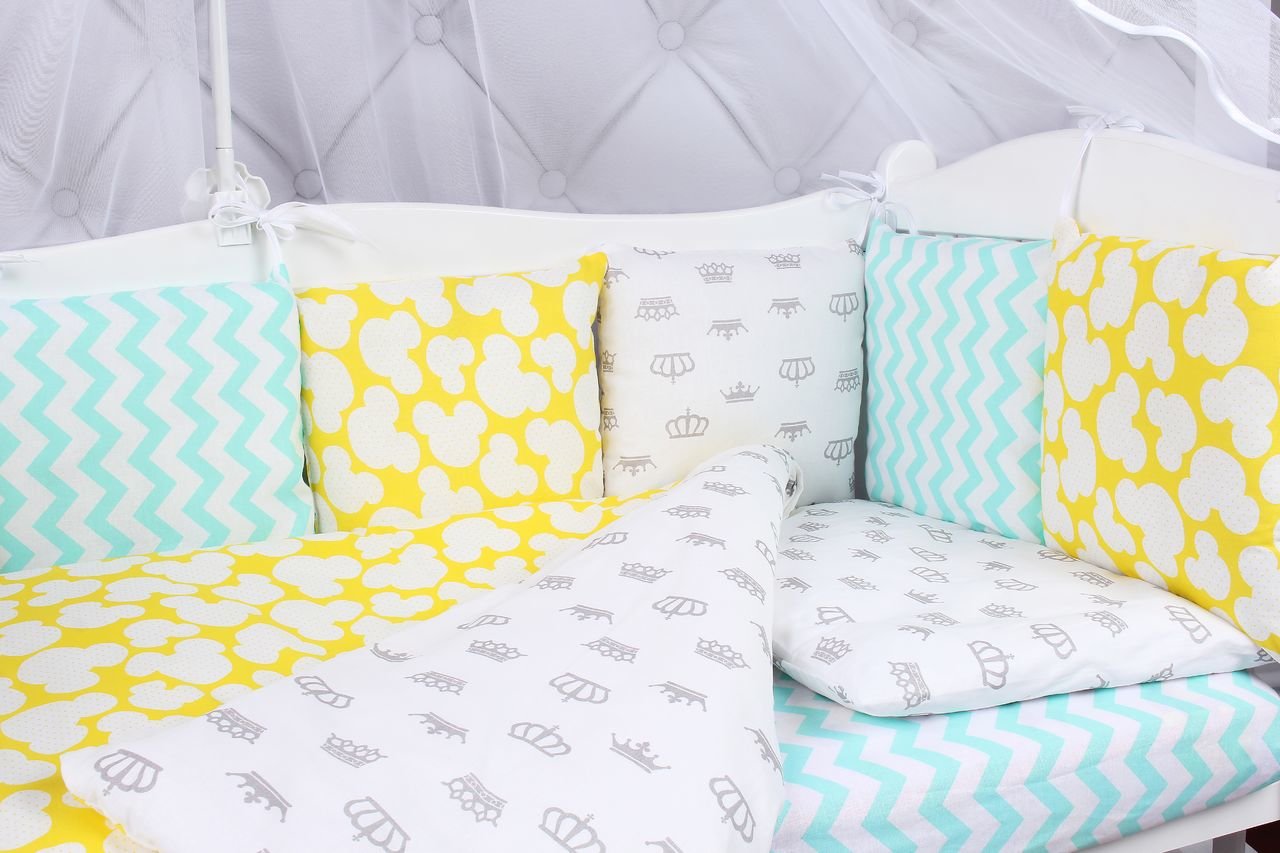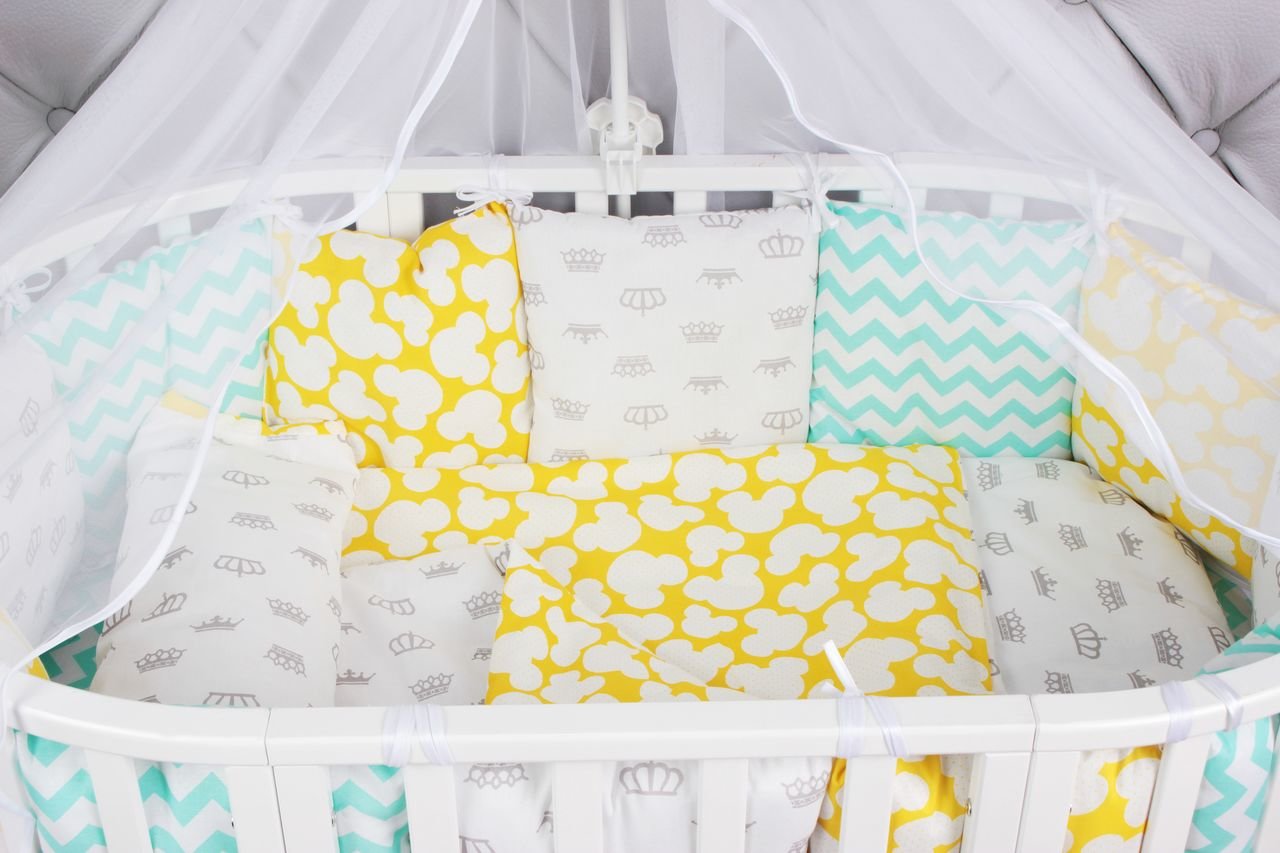 Бортики представлены в виде 12 декоративных подушек на завязках, можно комбинировать по настроению.