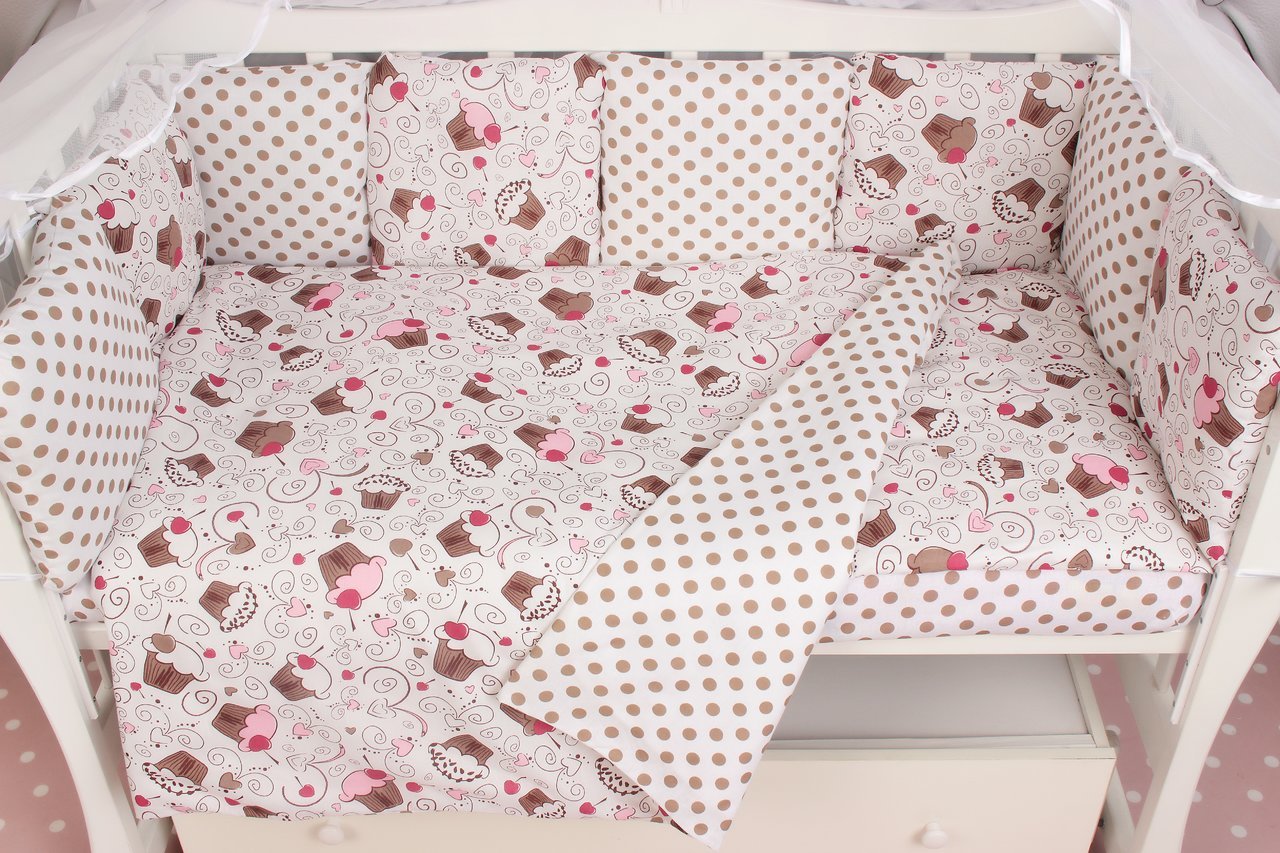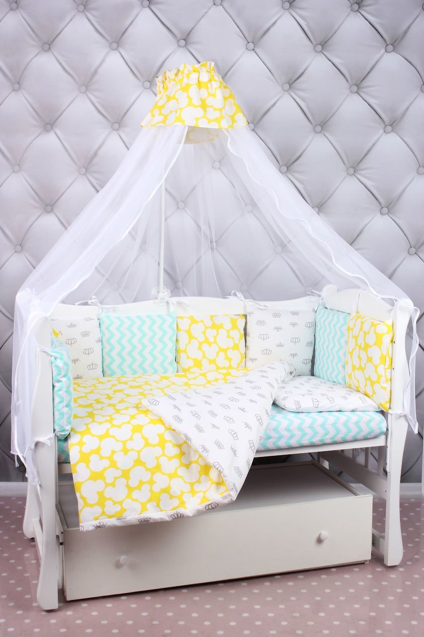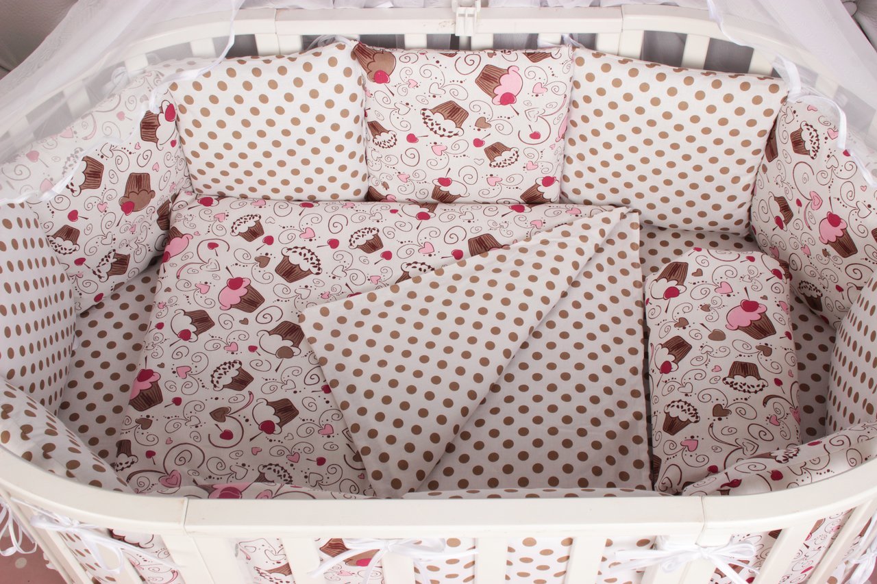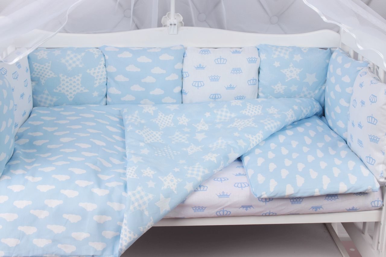Бортики представлены в виде 12 декоративных подушек на завязках, можно комбинировать по настроению.