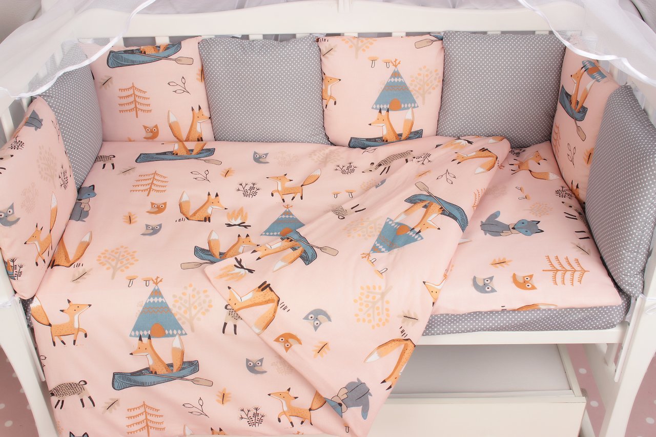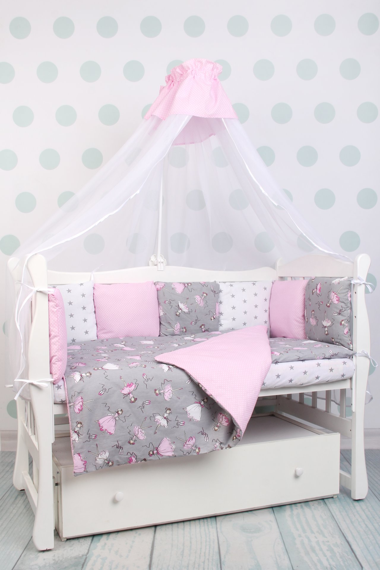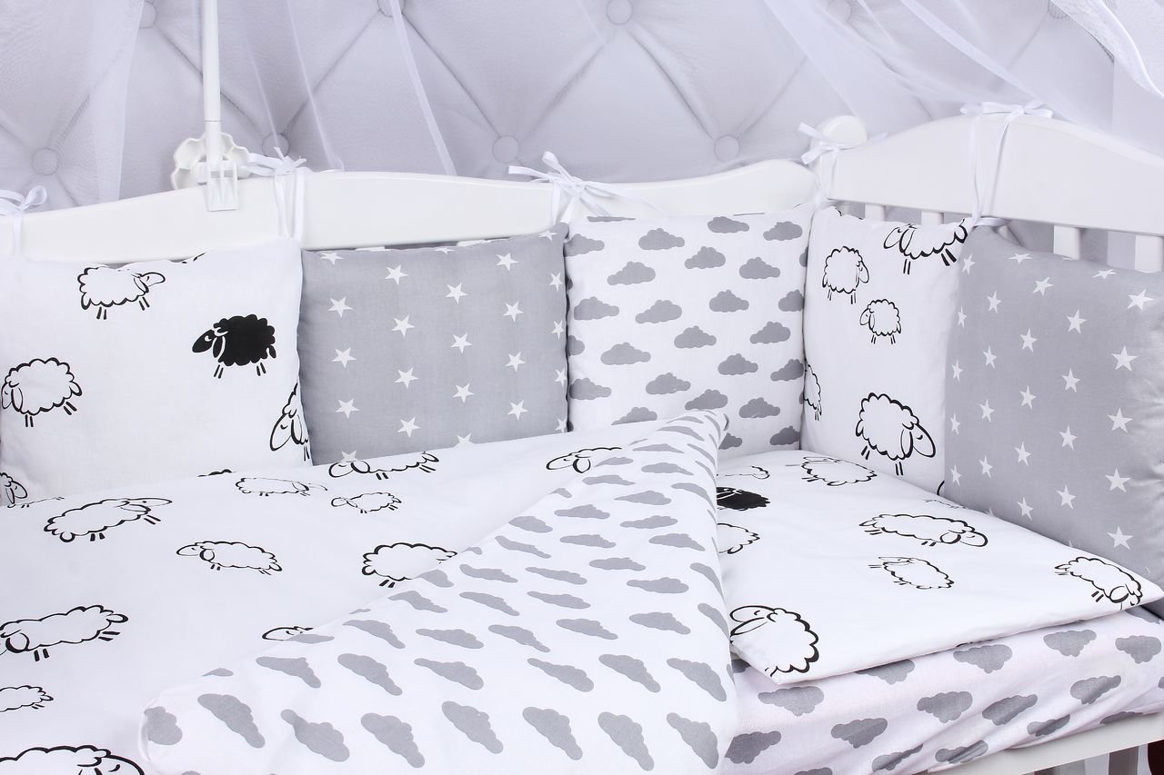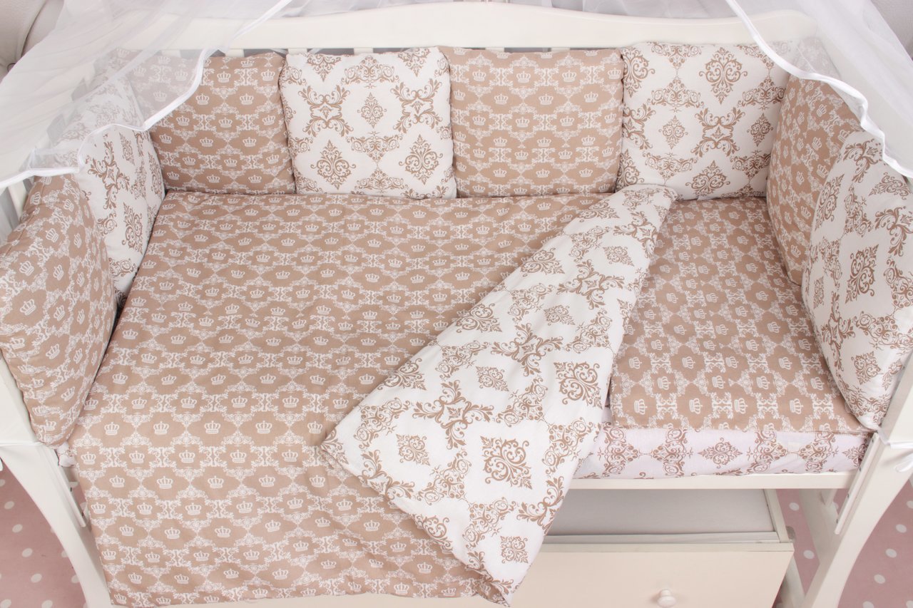 Бортики представлены в виде 12 декоративных подушек на завязках, можно комбинировать по настроению.