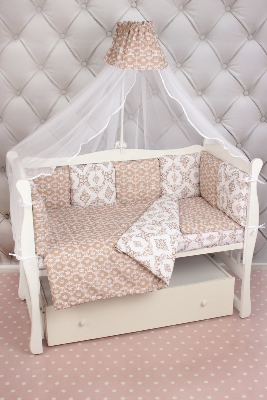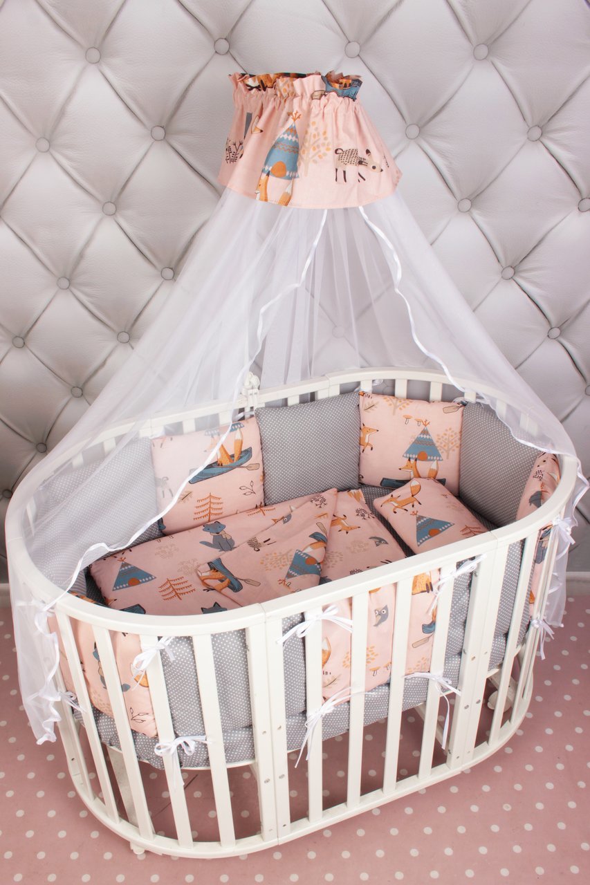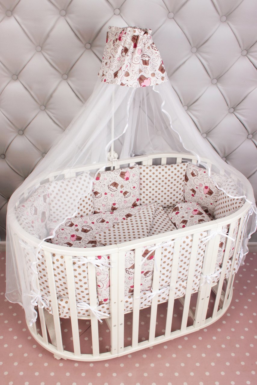 Особенно удобен комплект для использования в круглой кроватке, так как простыни уже адаптированы под ее нестандартную форму.