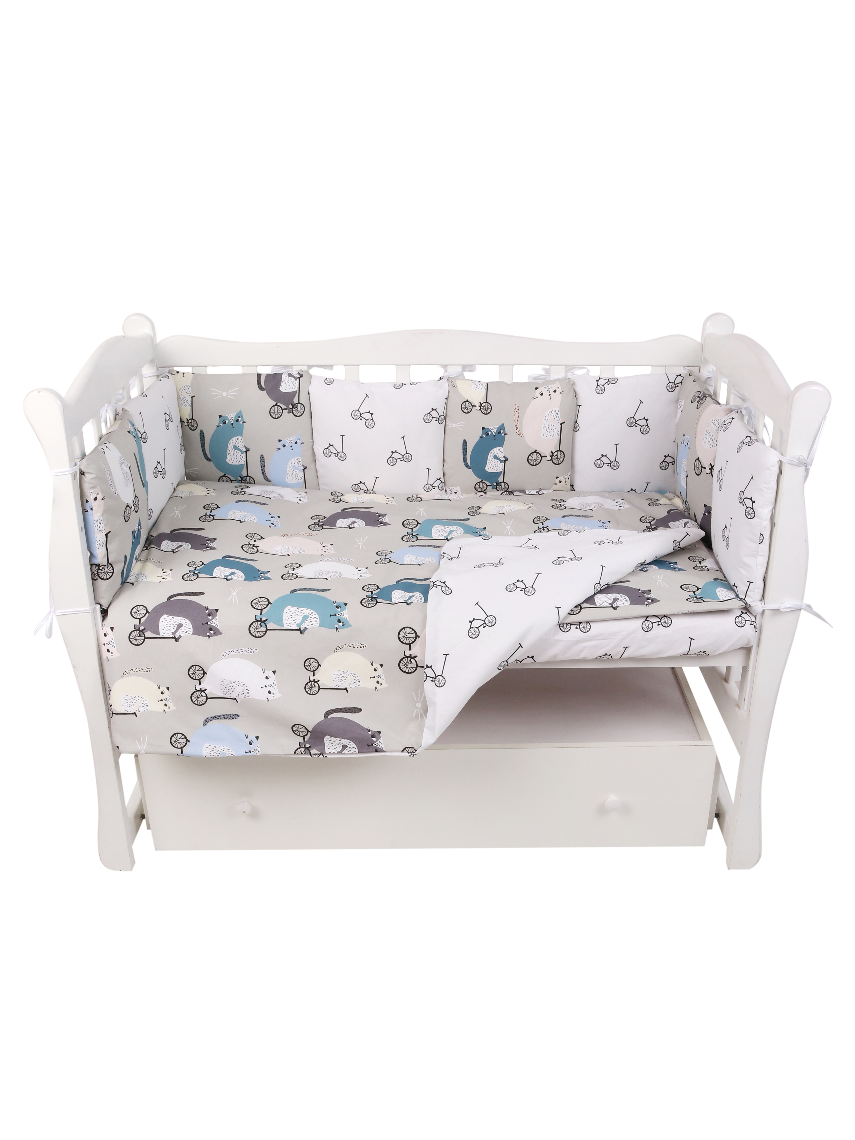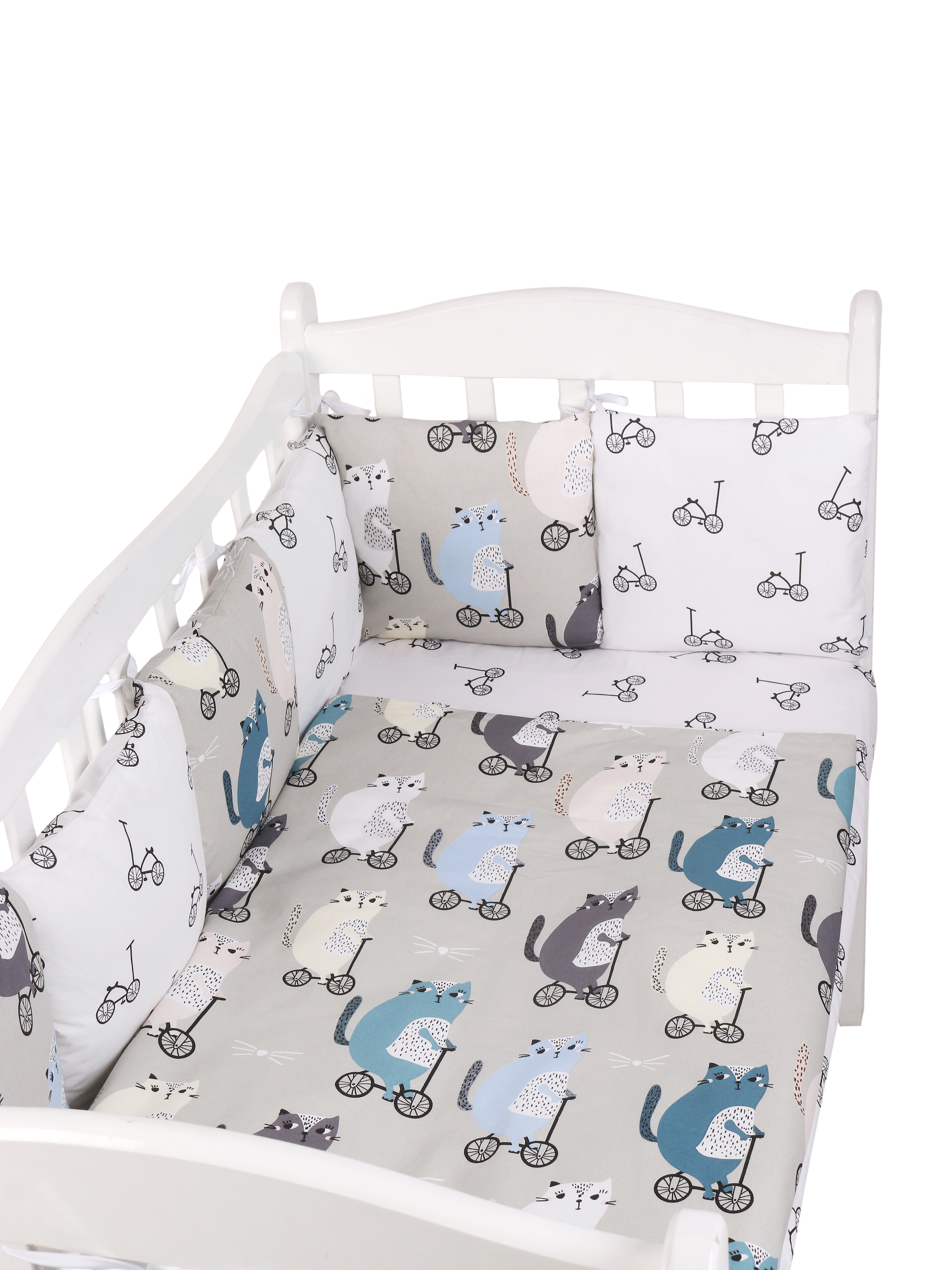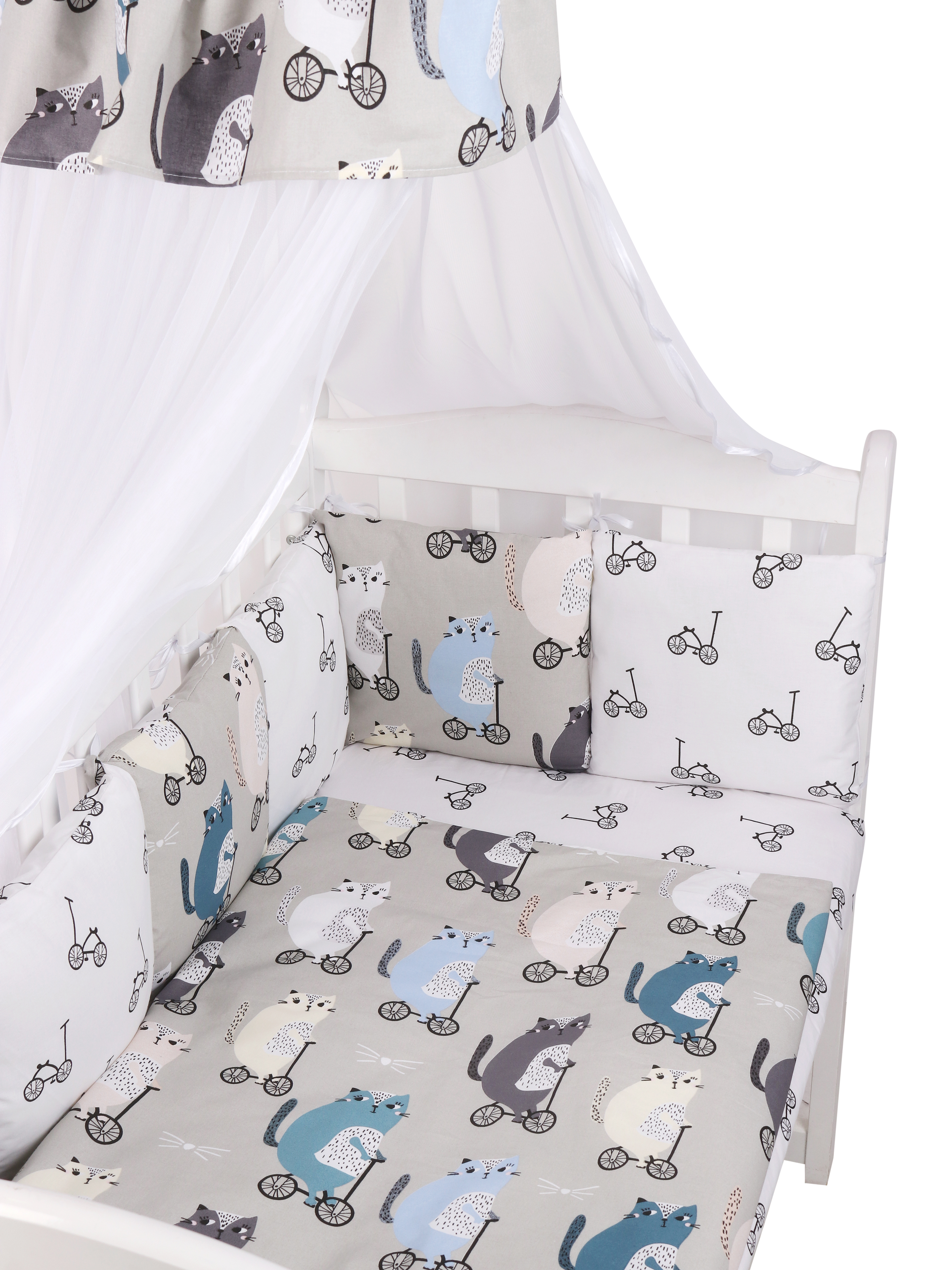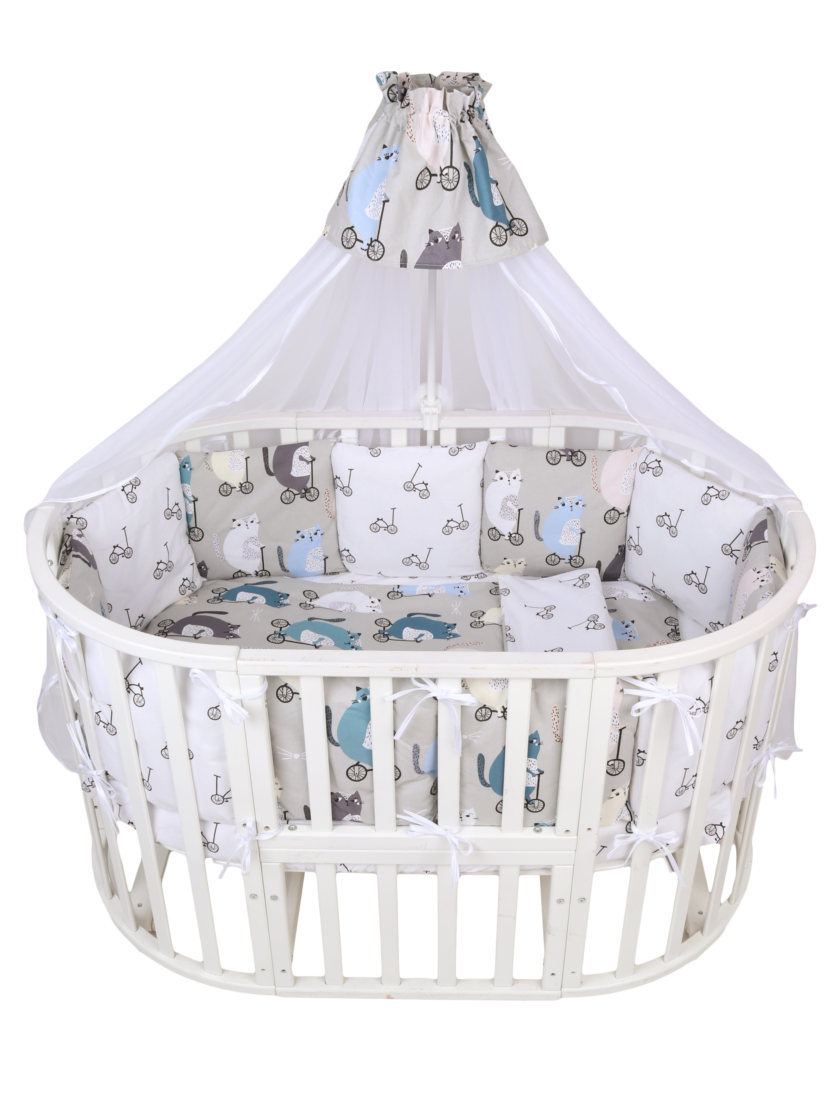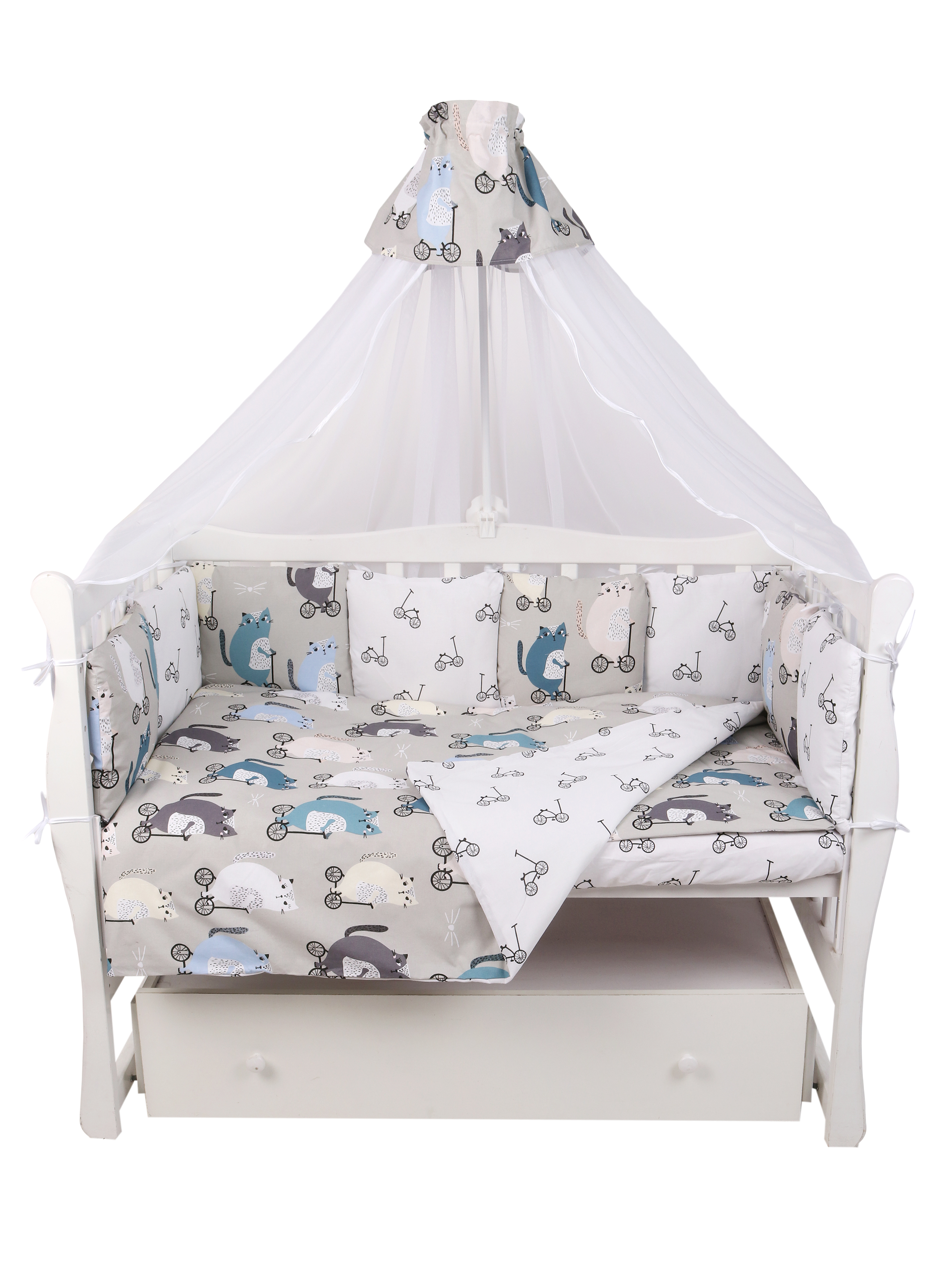 Комплект в кроватку Amarobaby Premium Велосипедисты (Амаробеби премиум)- это очень красивый, качественный комплект по очень привлекательной цене. Такой набор подойдет для круглой, овальной, классической кровати. В комплекте есть все необходимое для качественного и комфортного сна ребенка: бортики, простынь, балдахин, одеялко и подушечка. Все бортики имеют съемные наволочки, что облегчит уход за комплектом.