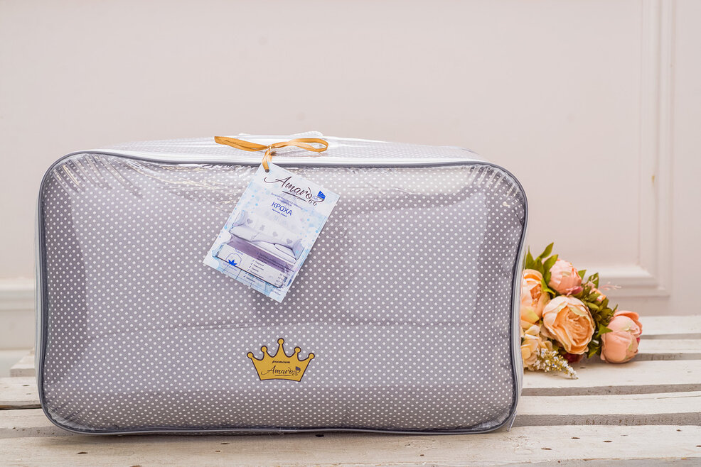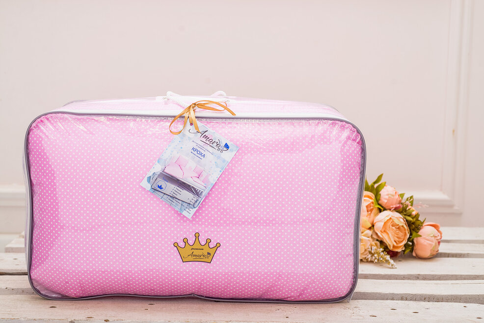Комплект детского постельного белья AmaroBaby КРОХА Premium (амаробеби) - это нежный комплект с вышивкой в красивой упаковке для круглой, овальной или классической кроватки. Комплекты детского постельного белья AmaroBaby выполнены из натурального и гипоаллергенного 100% хлопка (бязь/поплин), мягкого и приятного на ощупь и представлен в стильном и нежном дизайне: мелкий белый горошек и милые вышивки на бортиках! Такой комплект придется по душе каждой маме!. Наполнитель всех элементов - гипоаллергенный термофайбер. Швы выполнены особым образом, что помогает избежать дискомфорта малыша.