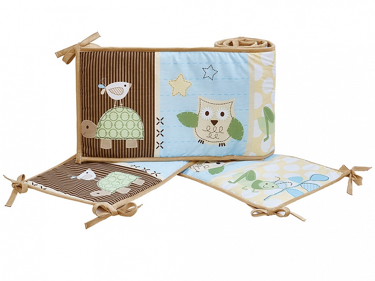 Бампер состоит из 4-х частей, что позволяет использовать его как по всему периметру кроватки в варианте для младенца, так и в варианте диванчика для подросшего малыша