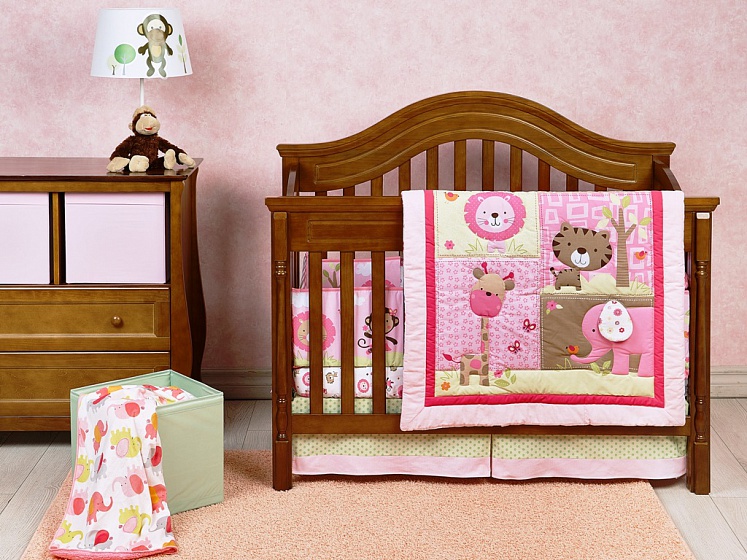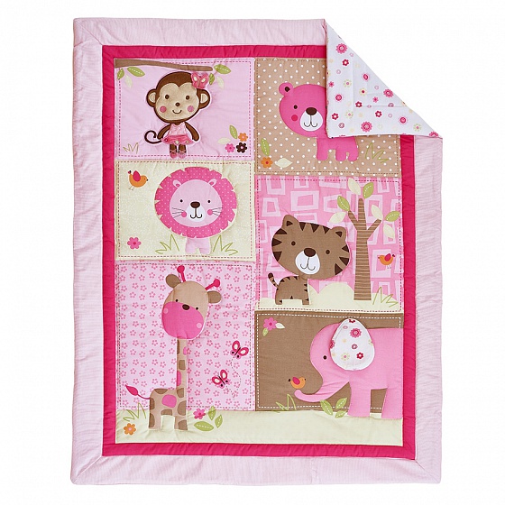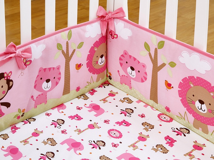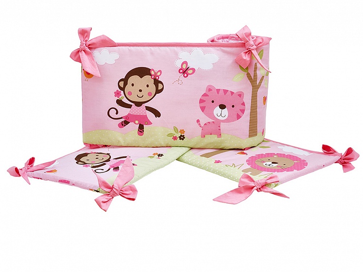 Комплект для детской кроватки Giovanni Pink ZOO ("Shapito") Джиованни шапито - очень яркий, нежный комплект для маленькой принцессы. Бортики украшены милыми персонажами, которые, несомненно, понравятся малышке. Их будет интересно рассматривать, трогать, пытаться дотянуться. Одеялко- плед украшен вышивкой и аппликацией, и его можно использовать как игровой коврик для ребенка.