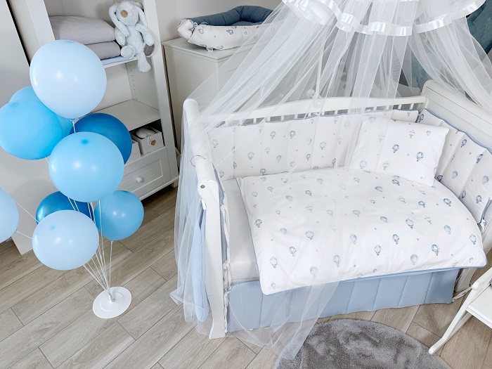 Комплект белья в кроватку Lepre Balloon Dreams New 6 предметов (Лепре баллунс дримс ) - красивый, двухсторонний комплект, выполненный из качественных и натуральных материалов. Нежные ткани прекрасно сочетаются с нежным детским рисунком. Малышу будет не только уютно, но и интересно в кроватке. Подходит для кроваток 120х60 и 125х65 см.