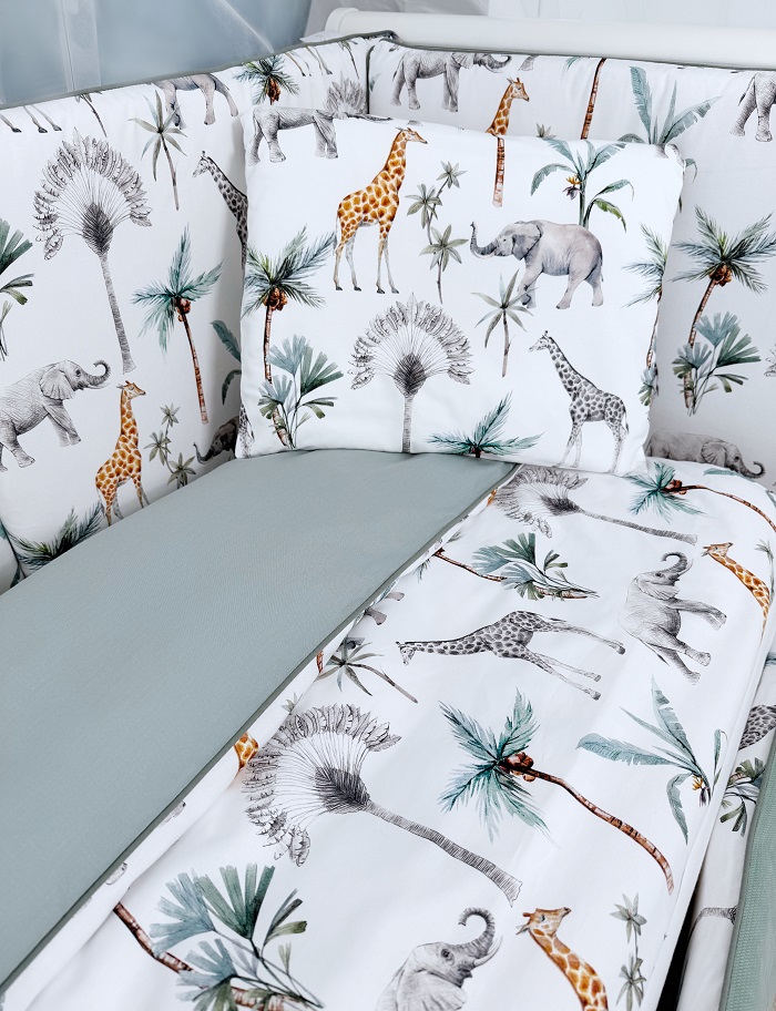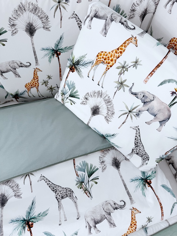 Комплект белья в кроватку Lepre Safari New 6 предметов (Лепре сафари ) - красивый, двухсторонний комплект, выполненный из качественных и натуральных материалов. Подходит для кроваток 120х60 и 125х65 см.