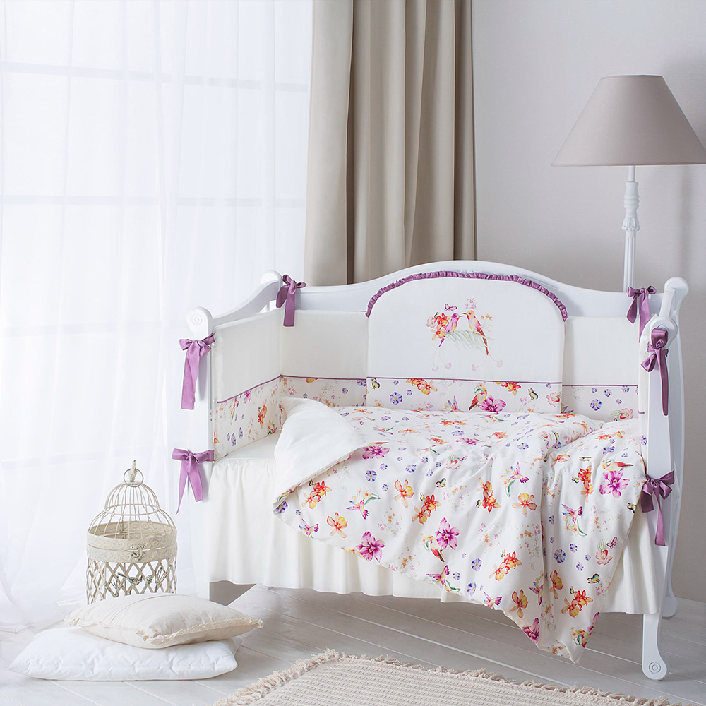 Вдохновленный акварельными шедеврами французского Монмартра, этот яркий 6-предметный комплект станет изюминкой вашего интерьера. Изящные рюши и шелковые банты наполнят атмосферу детской спальни легкостью и радостью. Теплые оттенки и южные мотивы согреют малыша в любую погоду, а нежность сатина подарит только приятные сны.