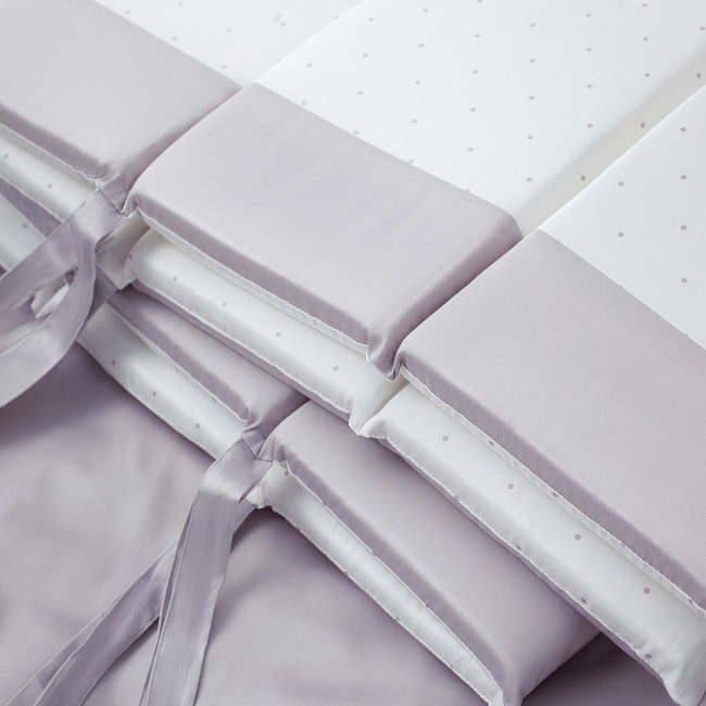 Для дополнительного удобства бампер сделан из отдельных частей со съемным чехлом. Теперь вы легко можете стирать только внешнюю часть бампера, не затрагивая наполнитель. Наполнитель бампера - экологически чистый, гипоаллергенный и легкий материал Hollcon. Этот материал прекрасно сохраняет форму.
