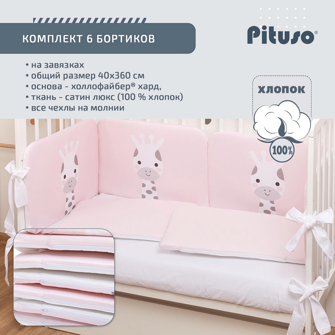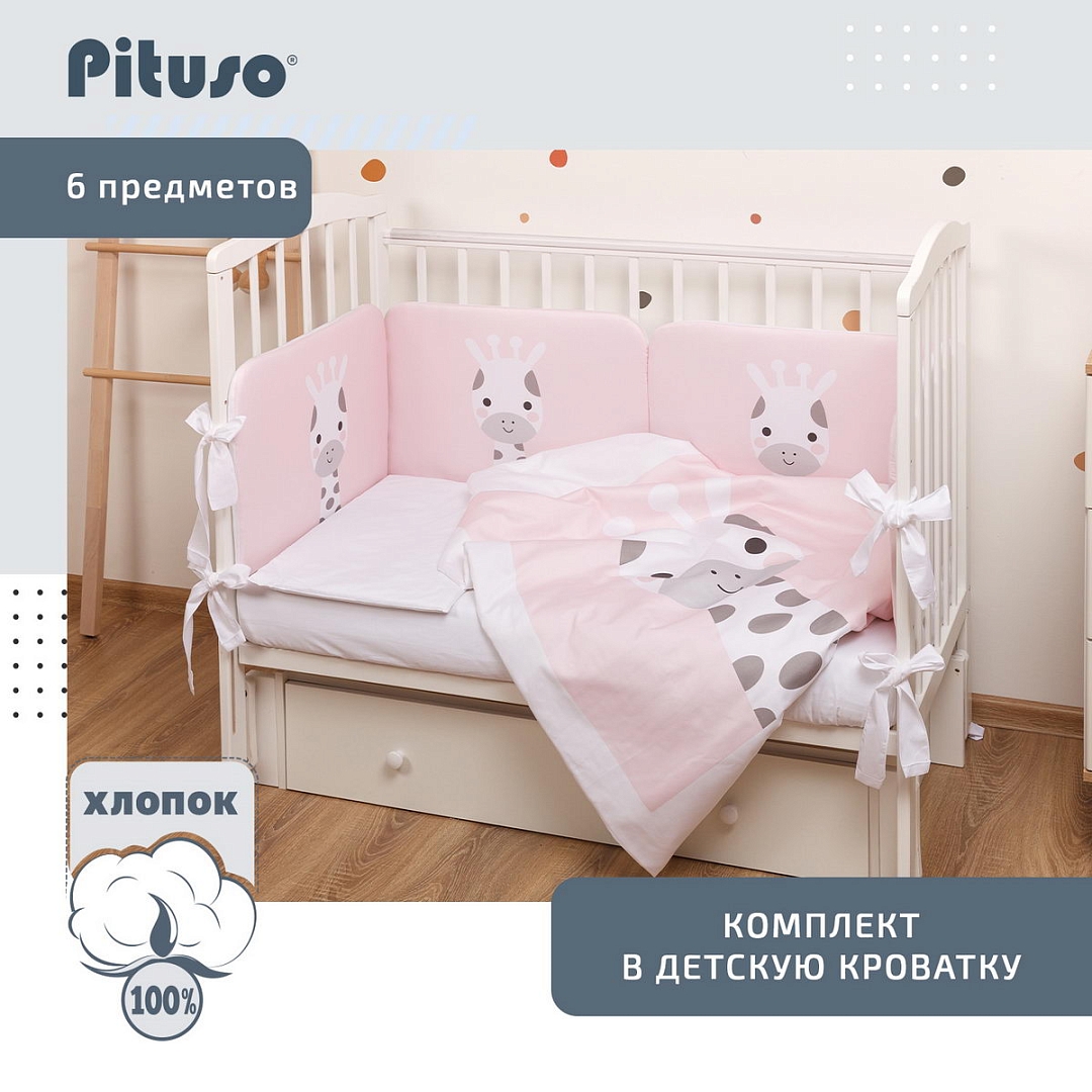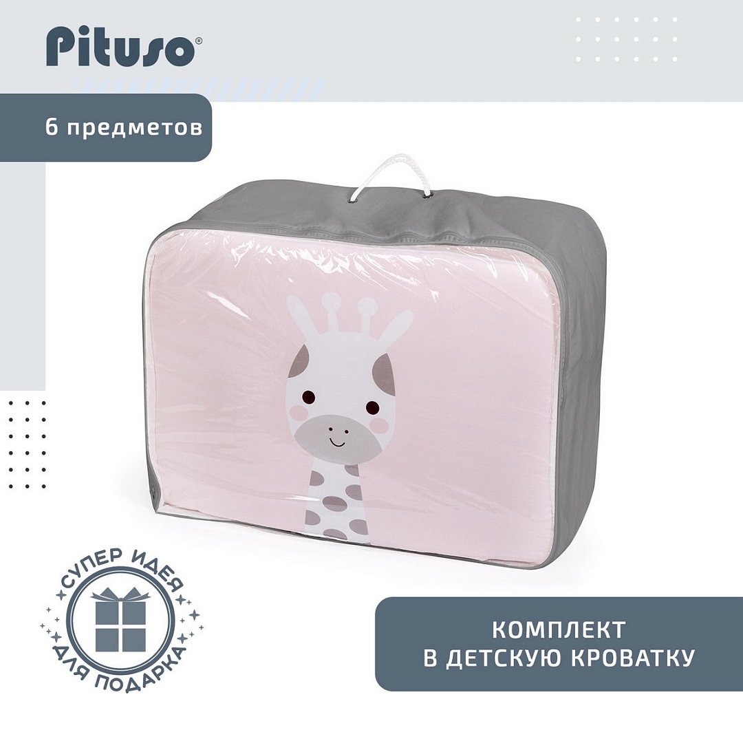 Комплект в кроватку 6 предметов PITUSO PT - качественный комплект в детскую кроватку размерами 120х60 см и 125х65 см. Комплект состоит из 6 предметов и включает в себя самые необходимые предметы для комфортного сна ребенка. Комплект выполнен из высококачественного сатина-люкс, который особенно подходит для деток с чувствительной кожей.