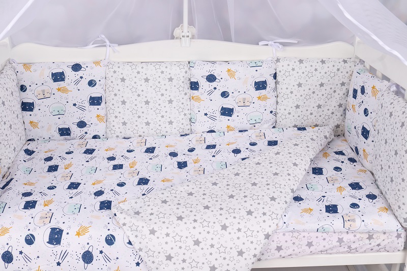 Особенными преимуществами комплекта в кроватку от AmaroBaby является универсальный размер (можно использовать в нестандартной кроватке), а также компактный размер – можно с легкостью брать любимый комплект с собой в путешествие или в гости.